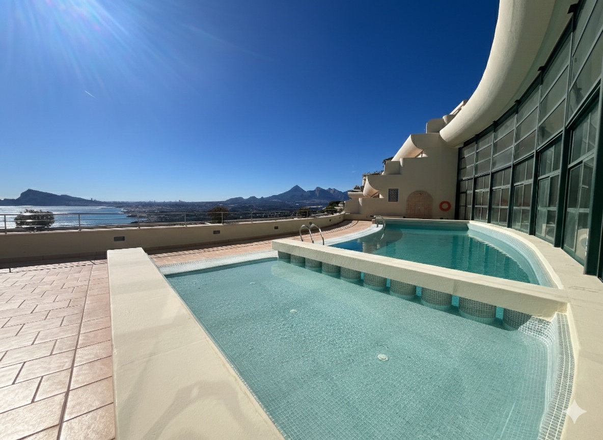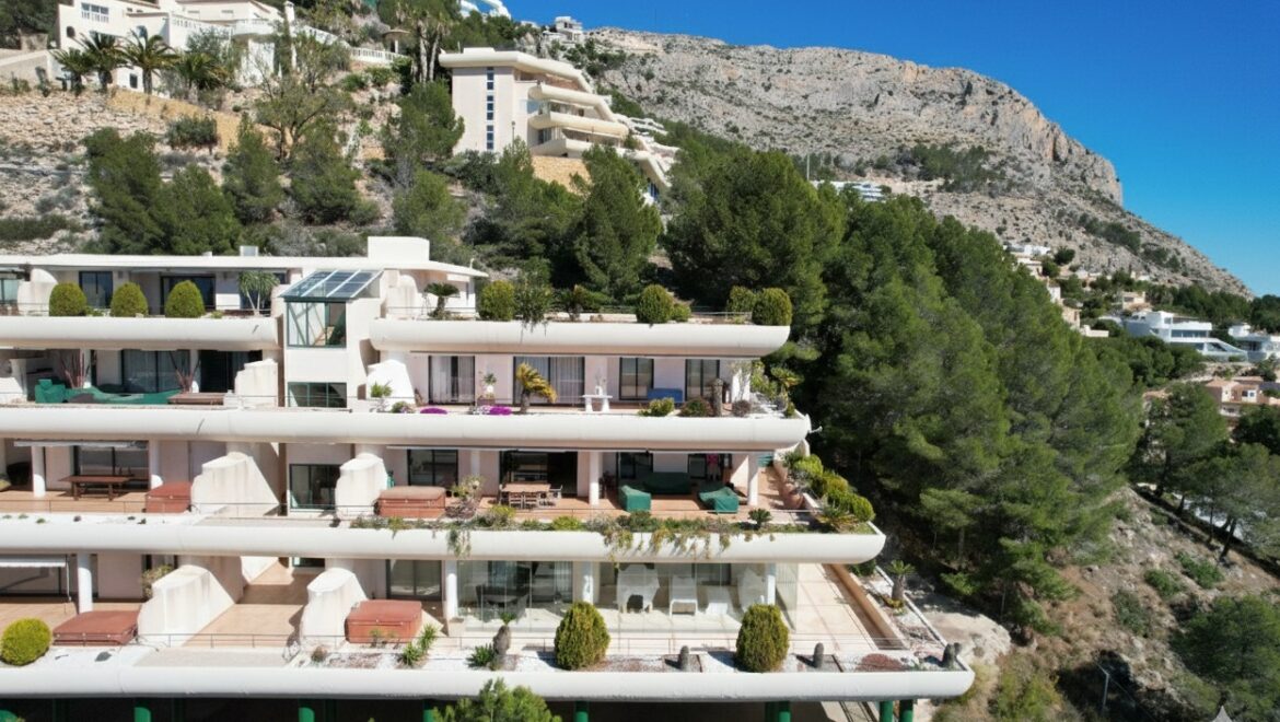 Este elegante apartamento cuenta con aproximadamente 150 m² de espacio interior refinado, combinados con una igualmente impresionante terraza privada de 150 m² que se abre a vistas impresionantes de la bahía de Altea y las impresionantes montañas Sierra de Bernia.