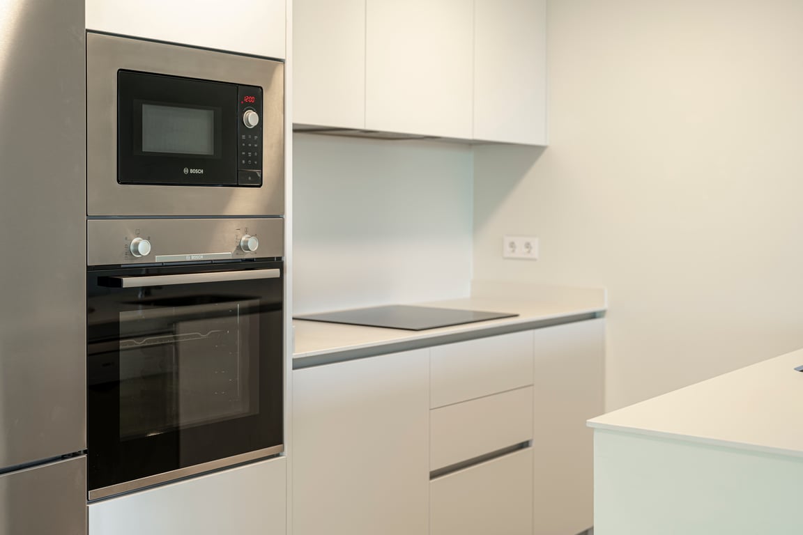 Outside, the apartment offers two private outdoor areas: a garden accessed from the master bedroom and a garden-terrace linked to the living space — ideal for relaxing, dining al fresco or enjoying the sun. The gated complex features a communal pool, a fully equipped gym and a co-working area that supports flexible living.