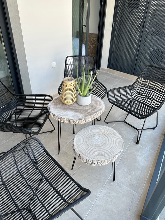 Outside, multiple terraces create spaces for sunbathing, outdoor dining, and entertaining. An infinity pool blends seamlessly with the sea as a backdrop, while a Mediterranean garden and barbecue area complete the outdoor experience. Covered dining areas and shaded lounges provide comfort from morning to evening.