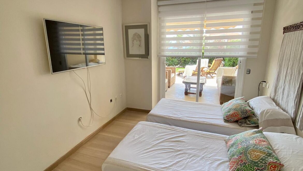 Este elegante apartamento en planta baja en la codiciada residencia Golden Beach es más que un hogar: es su santuario junto al mar. Con 150 m² de espacio interior bellamente diseñado, ofrece la combinación perfecta de confort moderno y encanto mediterráneo.