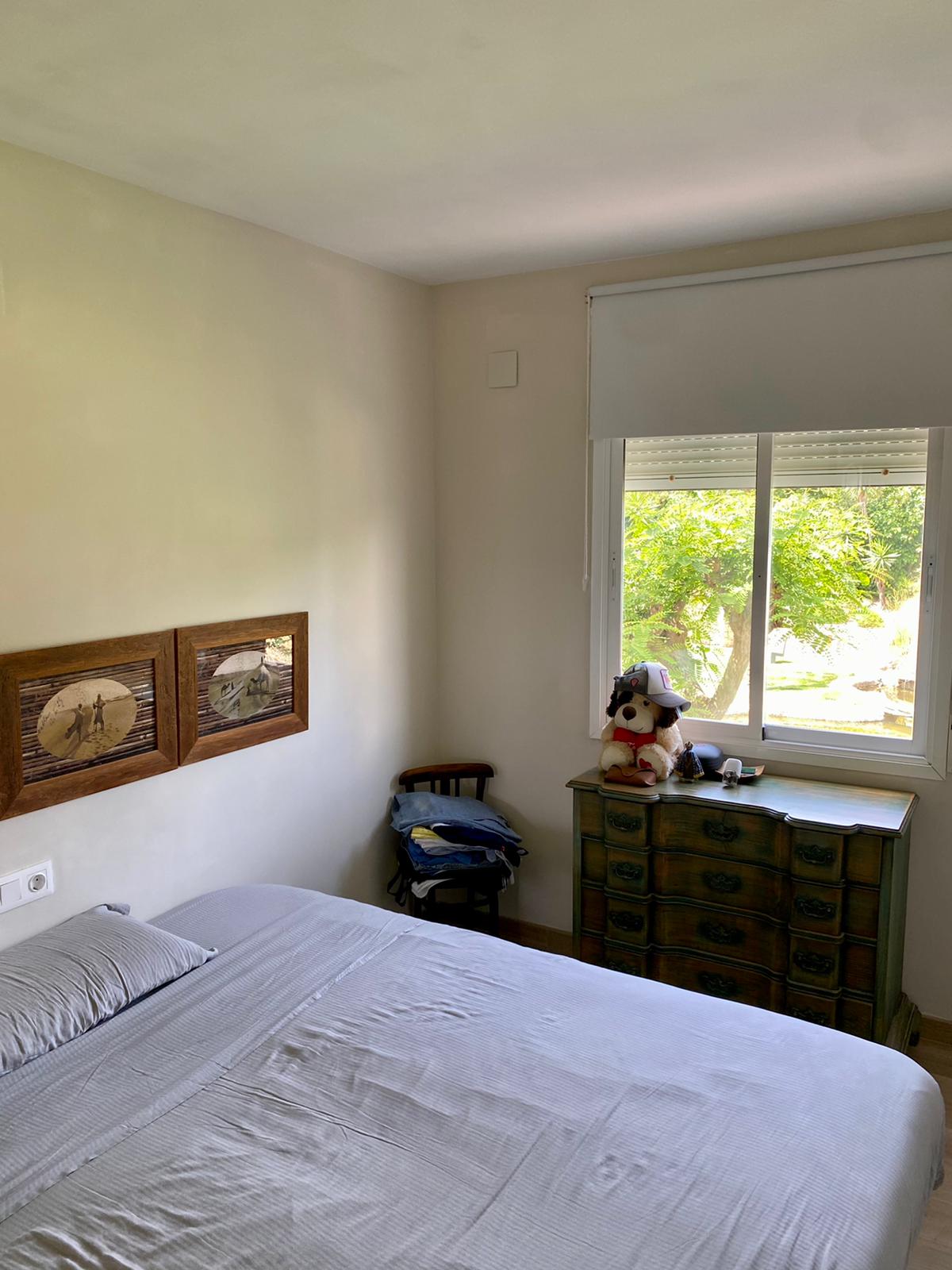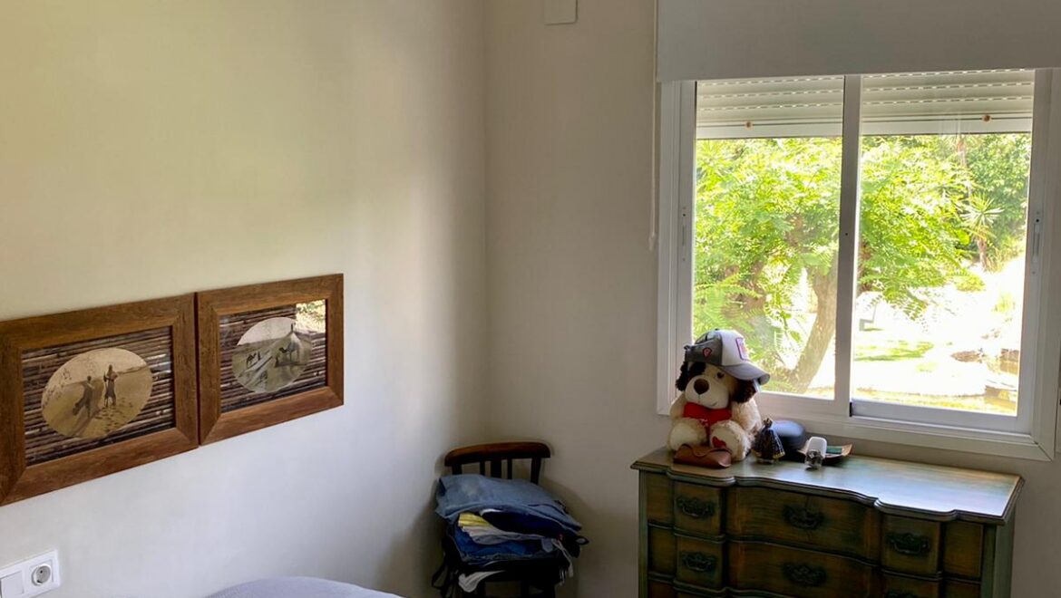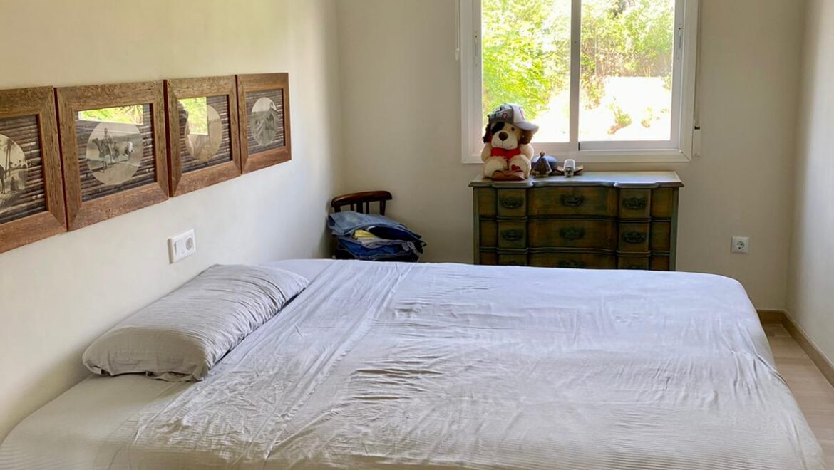 Entra y descubre dos amplios dormitorios, que incluyen una serena suite principal, y dos elegantes baños, además de un cómodo aseo de invitados. La sala de estar de planta abierta fluye a la perfección hacia el jardín, ideal para tardes de descanso bajo el sol o reuniones nocturnas con amigos.
