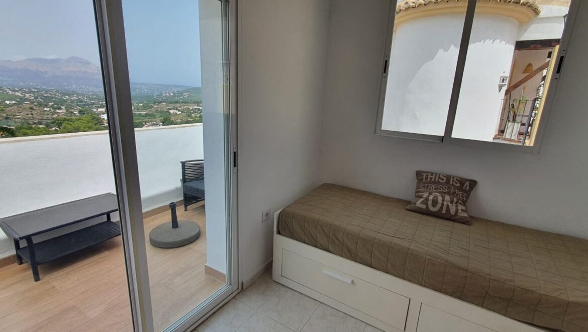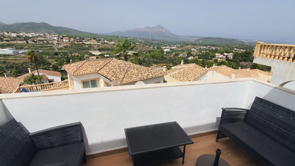 Descubre este acogedor chalet situado en la codiciada urbanización Las Mimosas en Benitachell. La propiedad ofrece un espacio de vida luminoso con 3 dormitorios y 2 baños, complementado por un balcón que ofrece vistas panorâmicas sobre el valle y hasta la montaña Montgó.