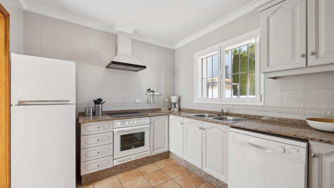 En el interior encontrarás un espacio de estar luminoso y abierto con acceso directo al jardín, una cocina moderna con lavadero independiente y dos amplios dormitorios con armarios empotrados.