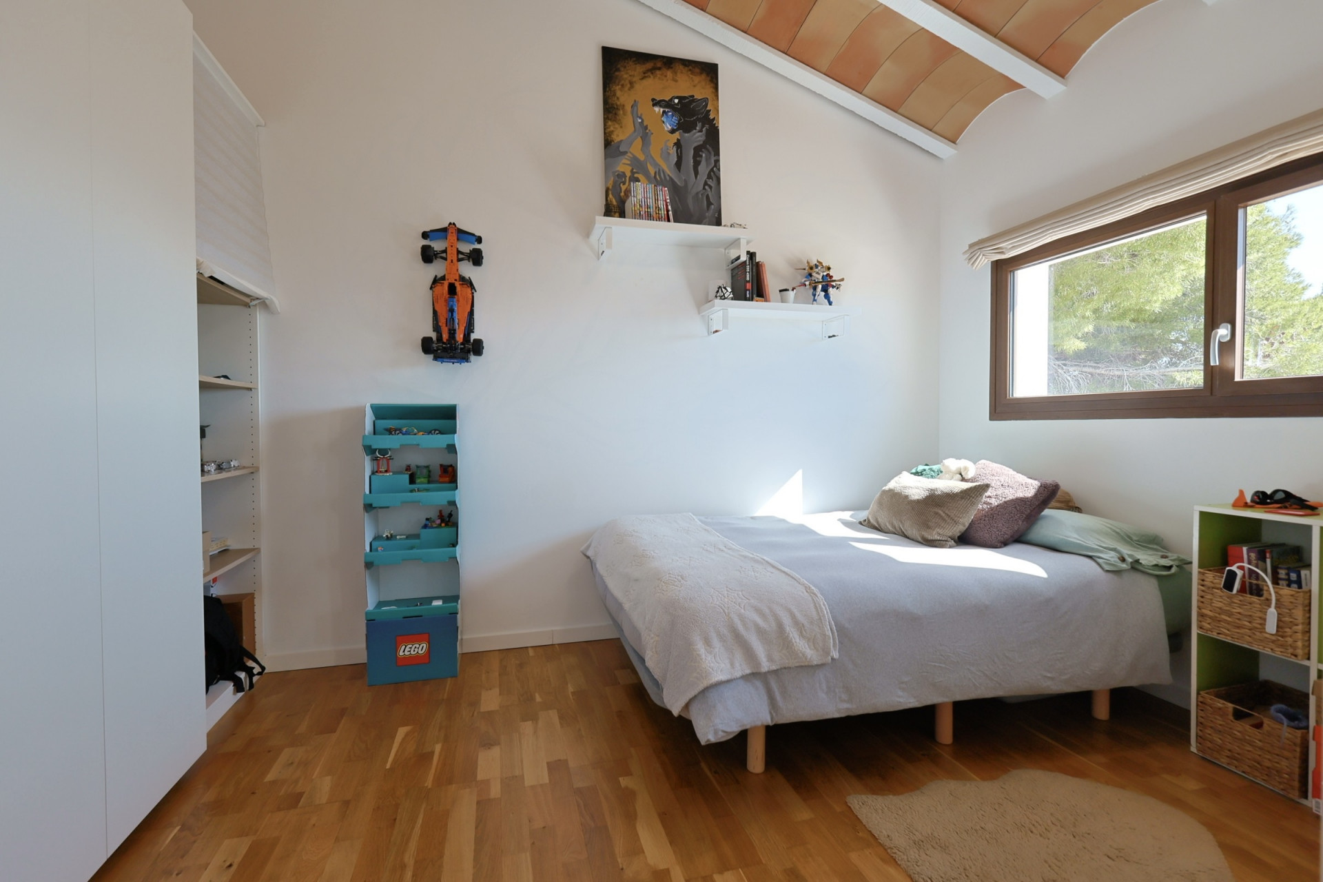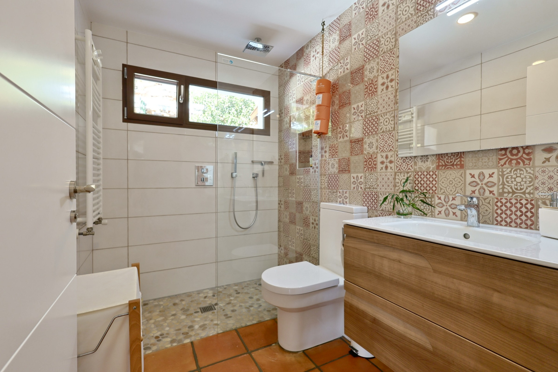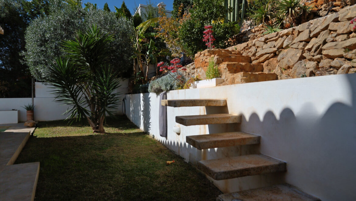 En el exterior, la propiedad está pensada para disfrutarse todo el año: una espectacular piscina de 12,5 metros, cocina de verano, zona de barbacoa y varias terrazas ajardinadas de bajo mantenimiento crean un auténtico oasis mediterráneo para relajarse y compartir. El confort se refuerza con paneles solares, aire acondicionado y calefacción por suelo radiante, mientras que el garaje privado y el aparcamiento para varios vehículos aportan funcionalidad y comodidad.
