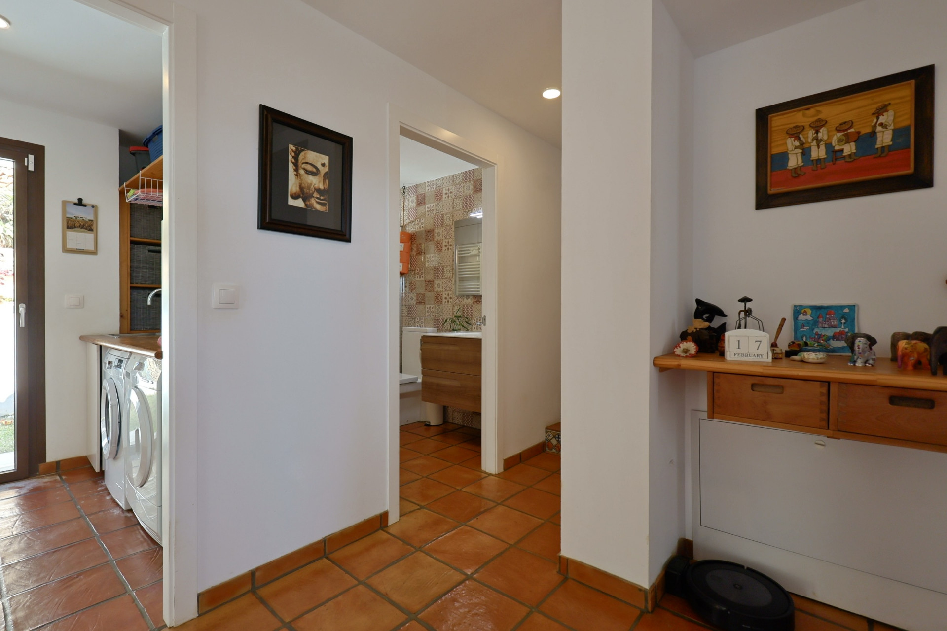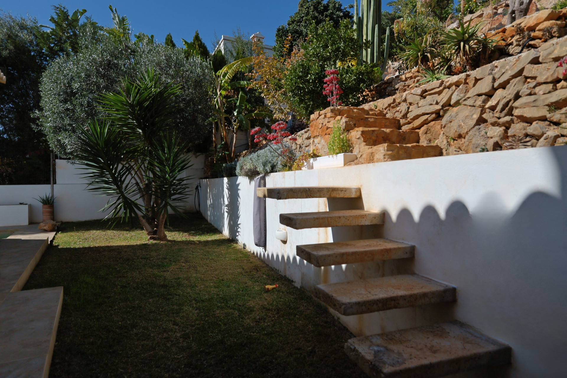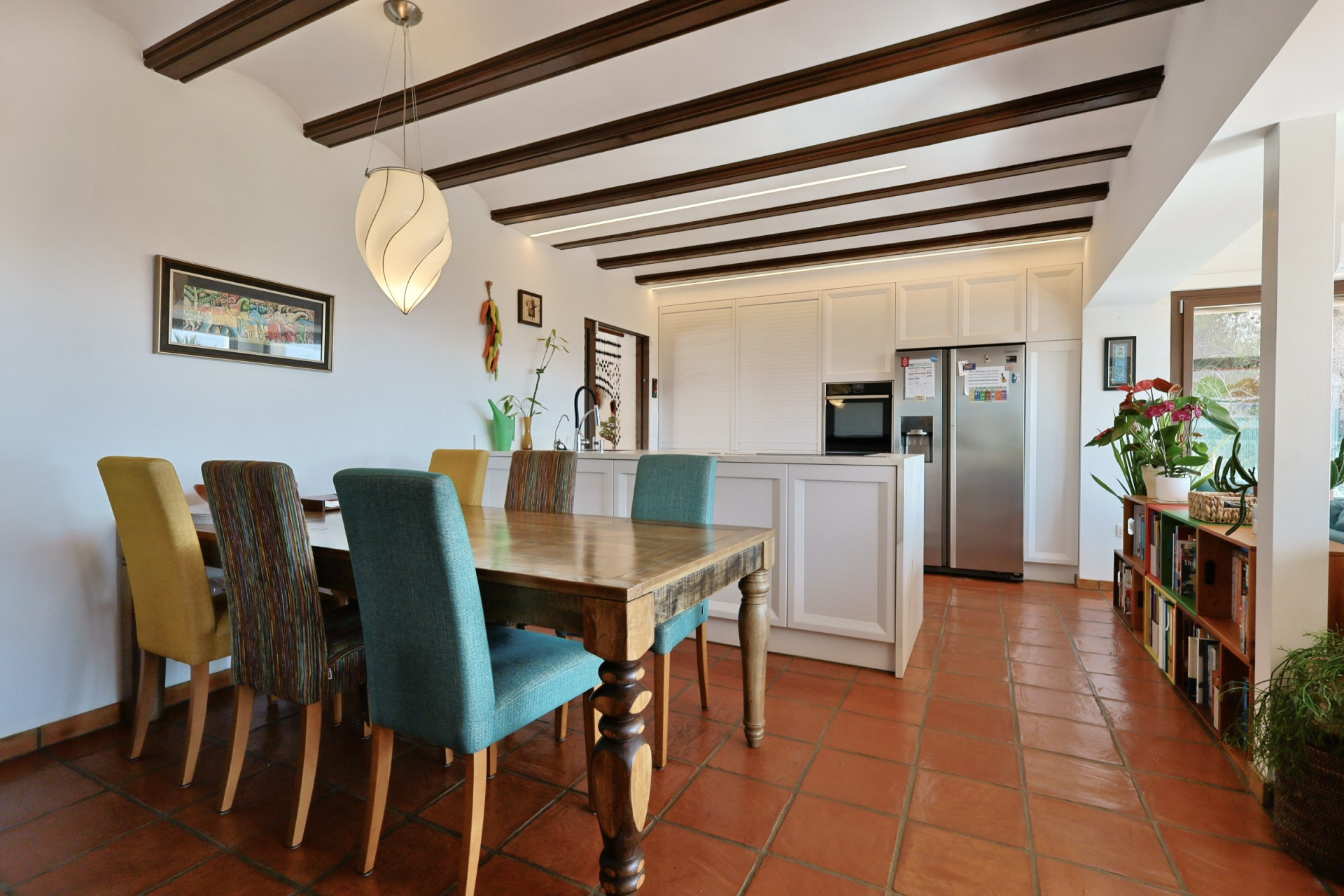 En el exterior, la propiedad está pensada para disfrutarse todo el año: una espectacular piscina de 12,5 metros, cocina de verano, zona de barbacoa y varias terrazas ajardinadas de bajo mantenimiento crean un auténtico oasis mediterráneo para relajarse y compartir. El confort se refuerza con paneles solares, aire acondicionado y calefacción por suelo radiante, mientras que el garaje privado y el aparcamiento para varios vehículos aportan funcionalidad y comodidad.