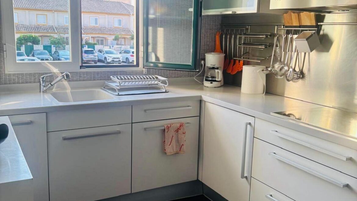La planta baja conecta directamente con las zonas comunes ajardinadas con piscina y ofrece acceso privado directo a la playa. También dispone de una zona privada con ducha, vestuario y espacio exterior cubierto, ideal para volver de la playa cómodamente.
