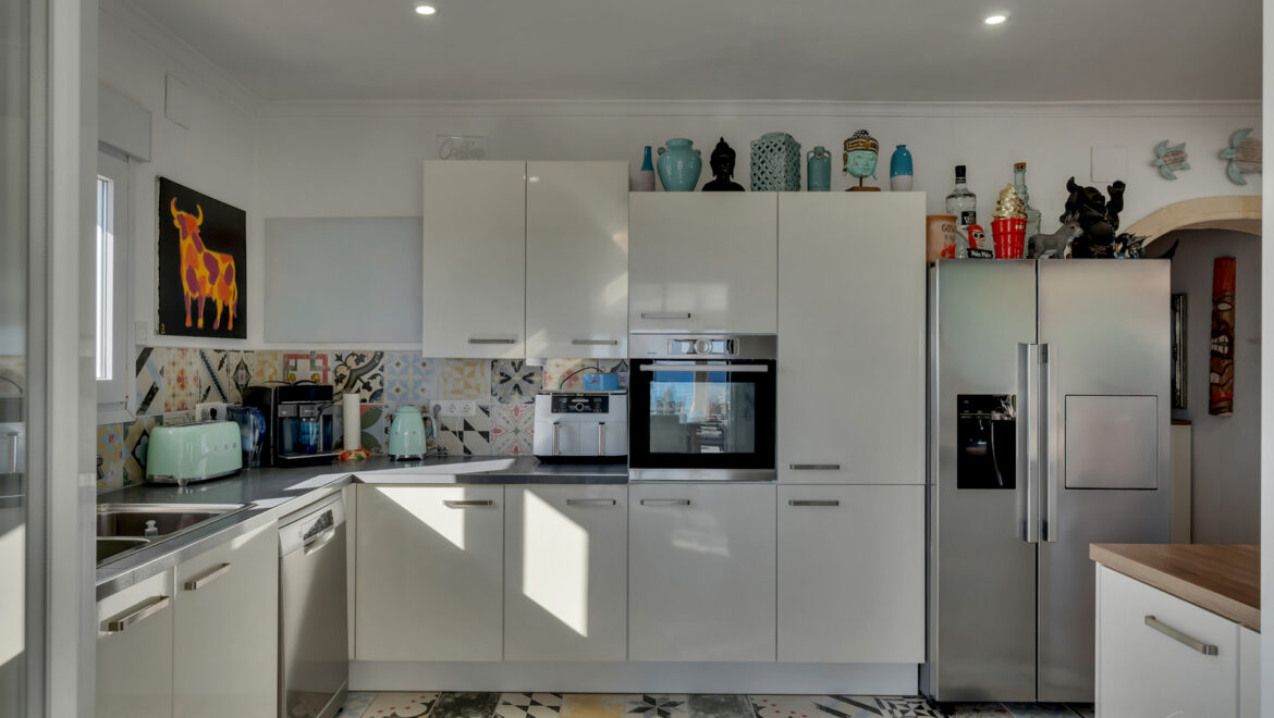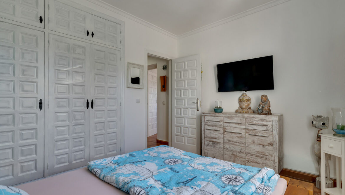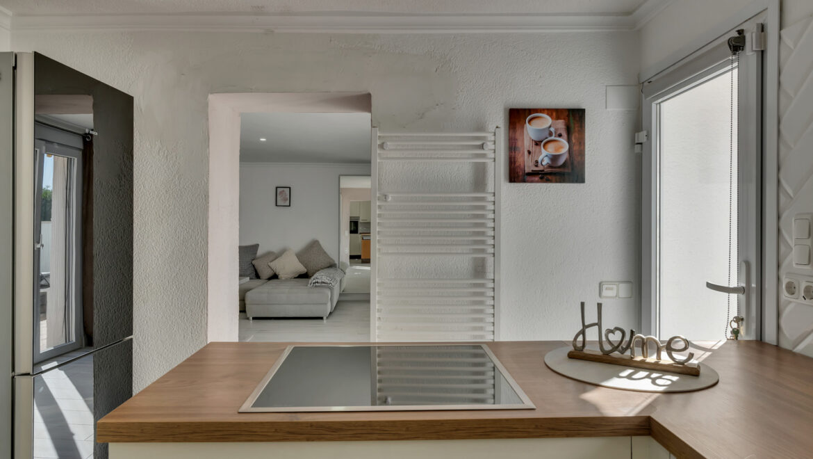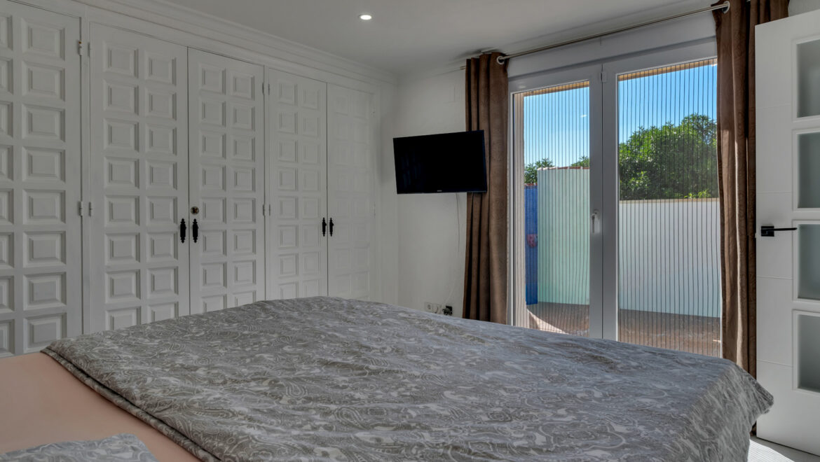 La planta inferior alberga un moderno apartamento de invitados reformado en 2024, que dispone de un dormitorio doble con acceso directo a una terraza que conecta con la zona de la piscina, un baño completo y una cocina americana, ofreciendo total independencia y comodidad.