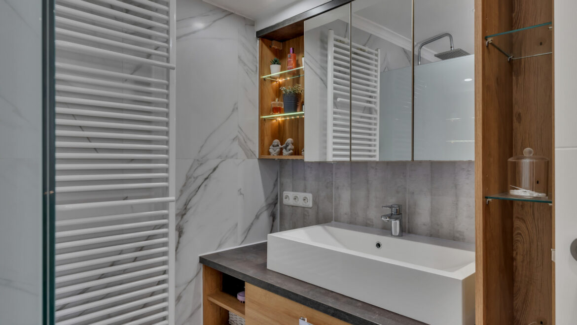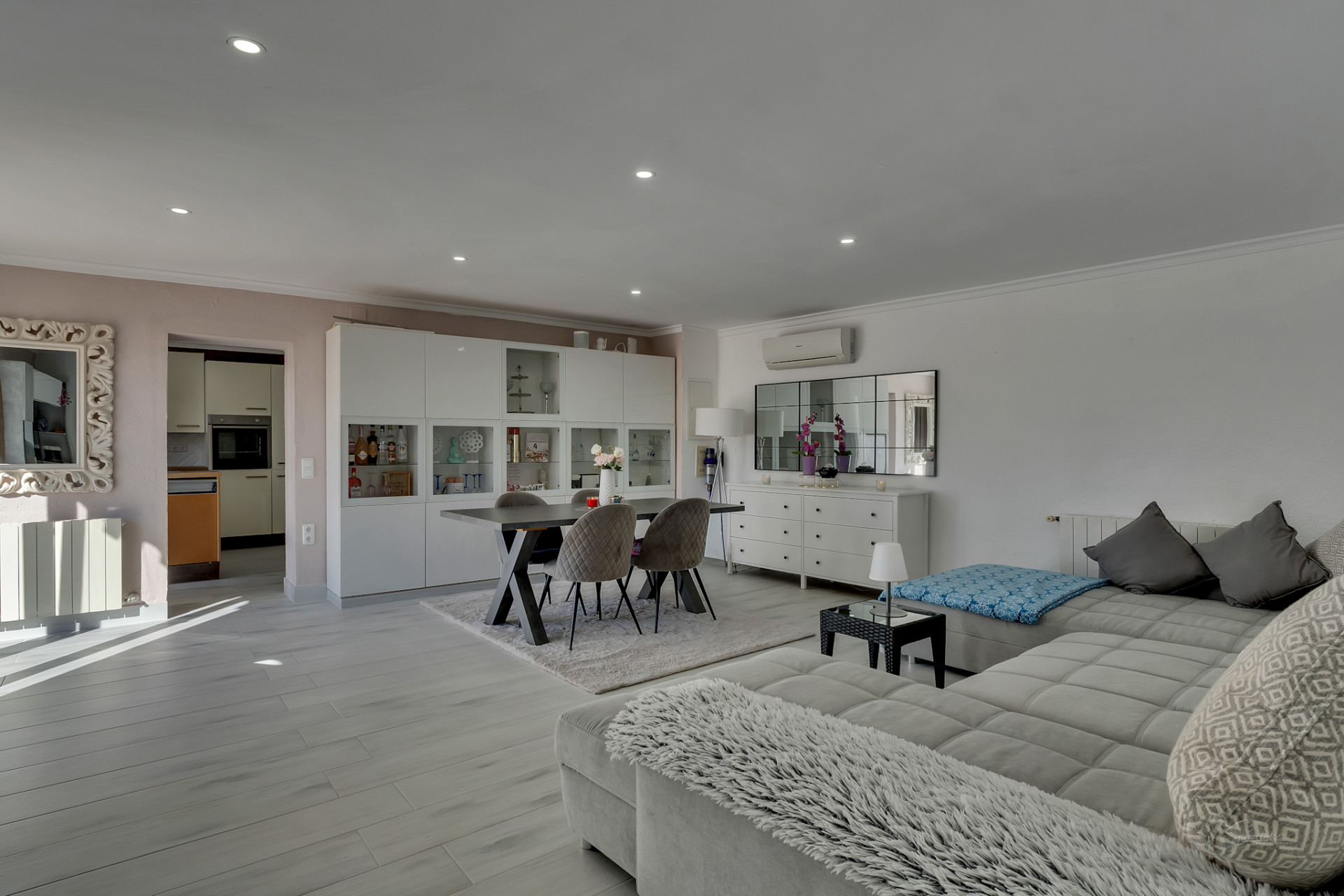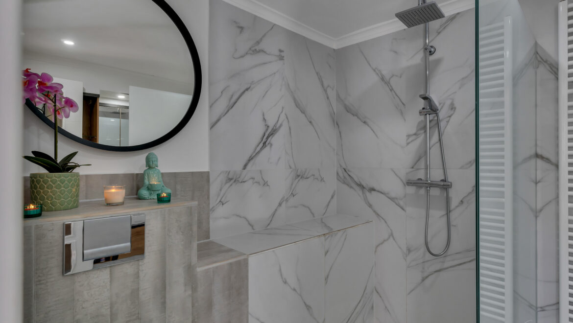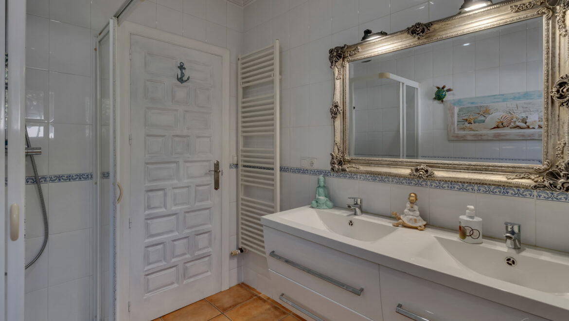 La planta inferior alberga un moderno apartamento de invitados reformado en 2024, que dispone de un dormitorio doble con acceso directo a una terraza que conecta con la zona de la piscina, un baño completo y una cocina americana, ofreciendo total independencia y comodidad.