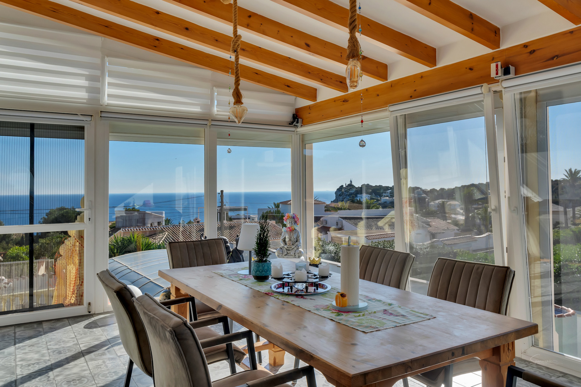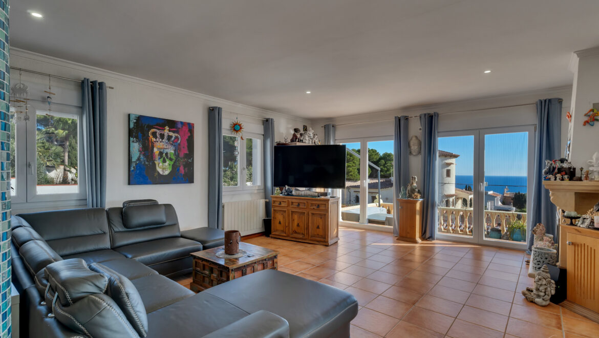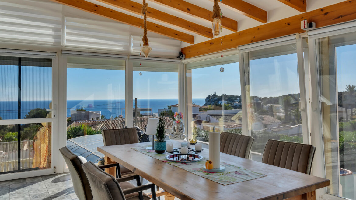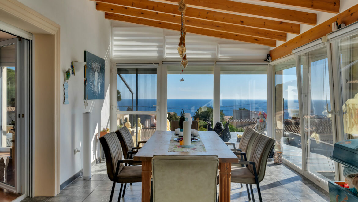 En los días despejados, desde el salón se puede contemplar incluso la silueta de Ibiza cruzando el horizonte del Mediterráneo, un privilegio al alcance de muy pocas propiedades.