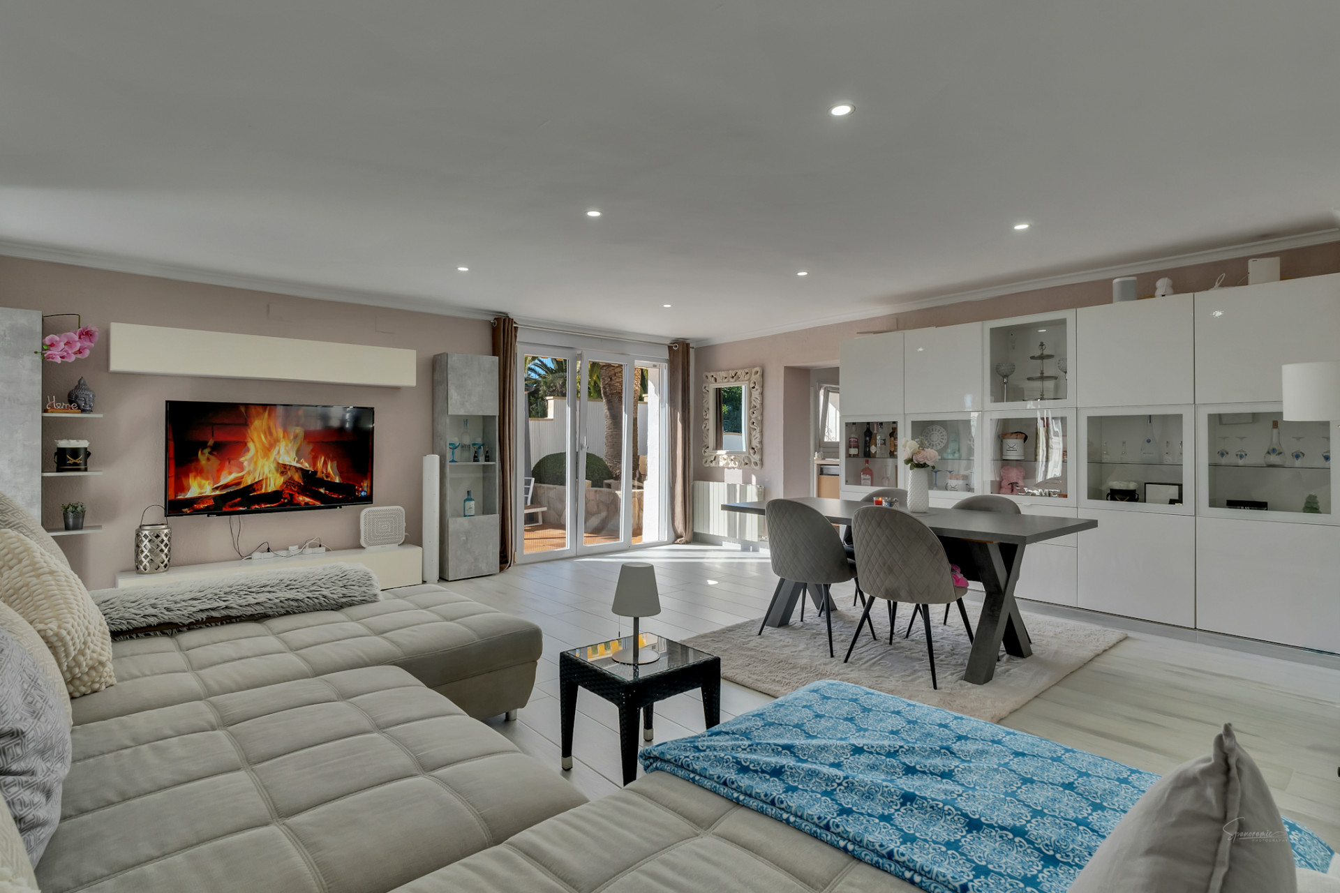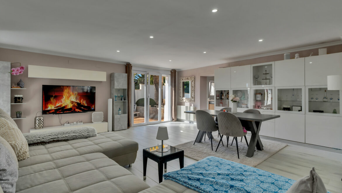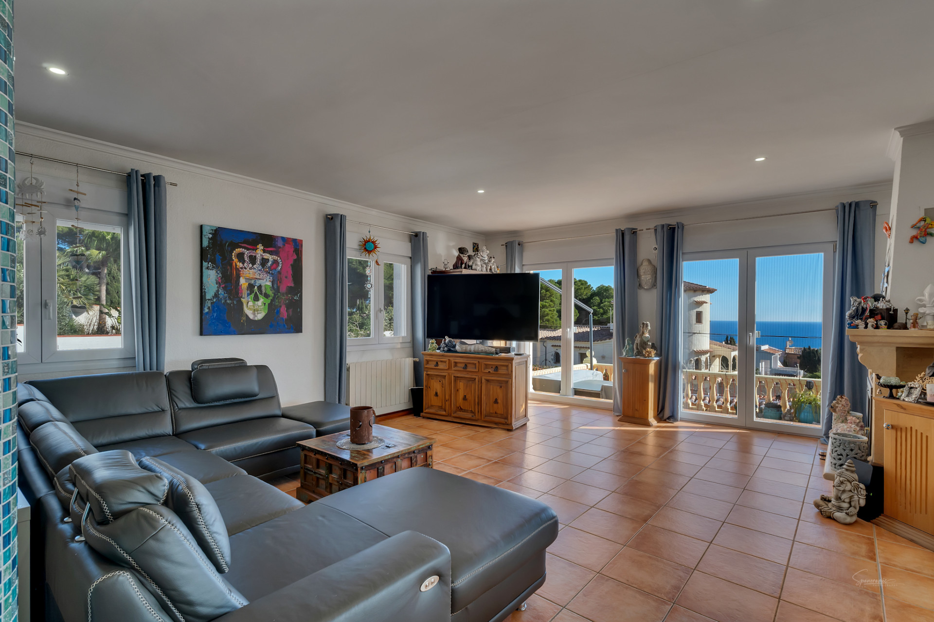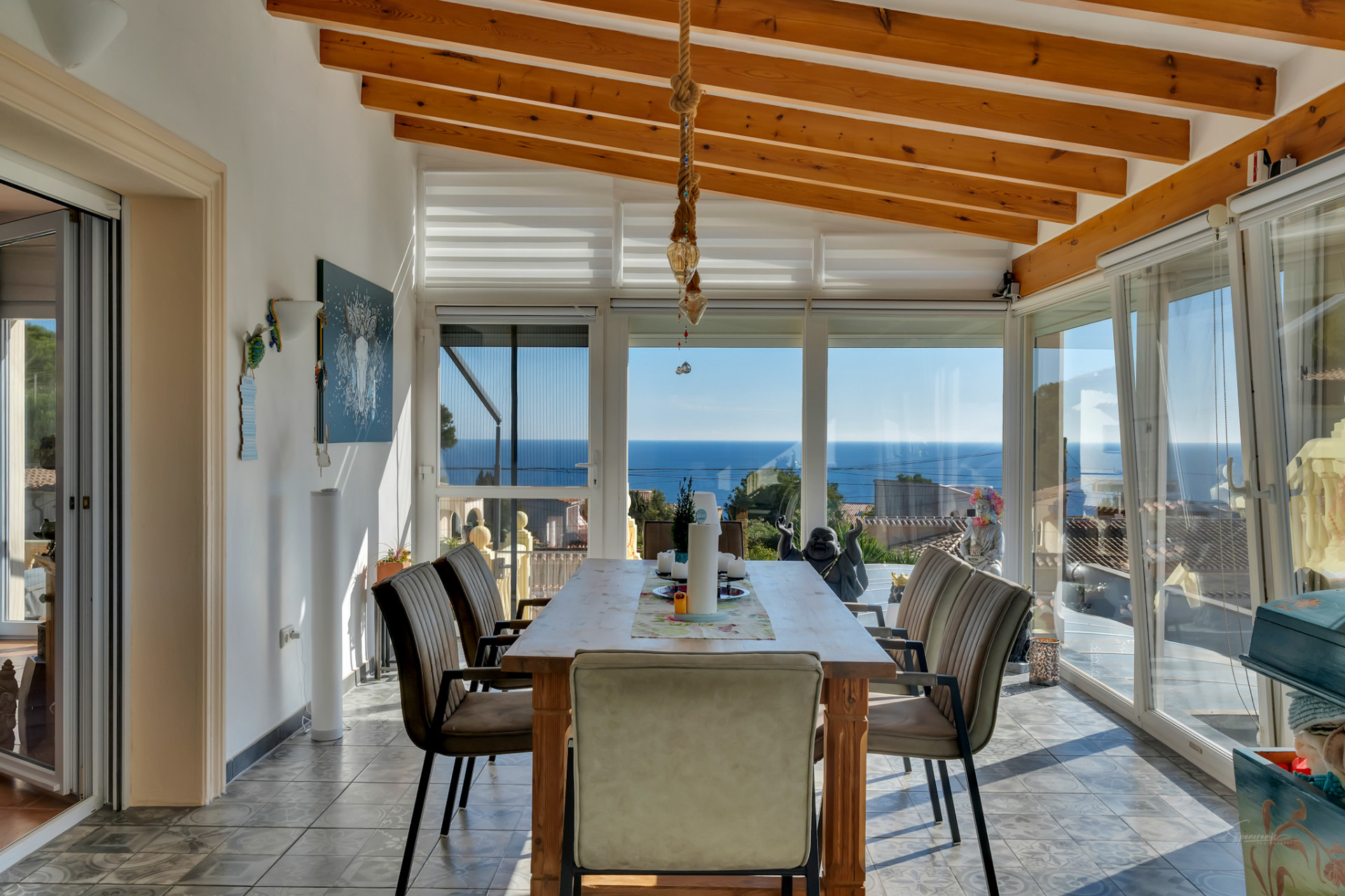 En los días despejados, desde el salón se puede contemplar incluso la silueta de Ibiza cruzando el horizonte del Mediterráneo, un privilegio al alcance de muy pocas propiedades.