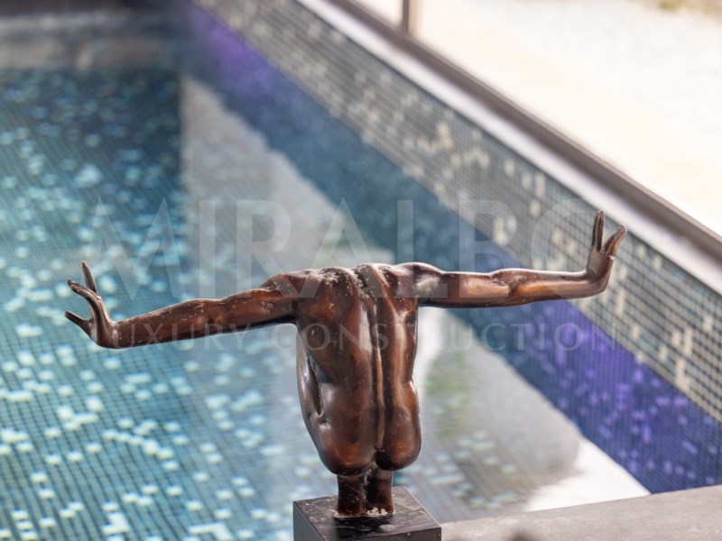 En el nivel superior, un loft se convierte en un área de trabajo tranquila, ideal para quienes buscan combinar trabajo y descanso en este enclave idílico. El bienestar está garantizado gracias al spa privado, que incluye una piscina climatizada y un Hammam, mientras que en el exterior, la piscina con fuente y zona de chillout invita a disfrutar de momentos de paz y ocio bajo el sol.