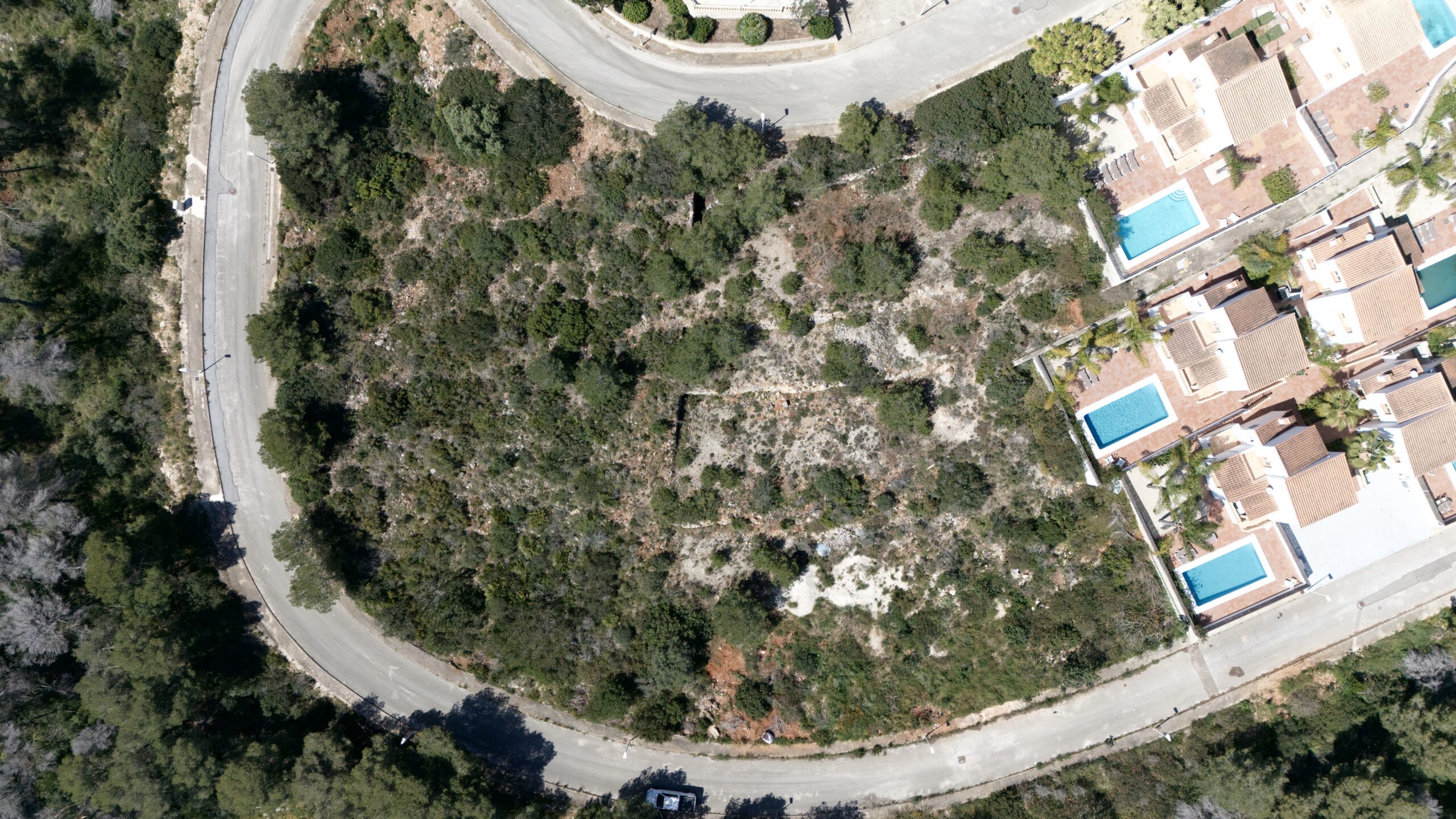 Parcela en venta de 5.180 m² con proyecto y licencia aprobados para la construcción de 9 bungalows independientes, cada uno con jardín y piscina privada.