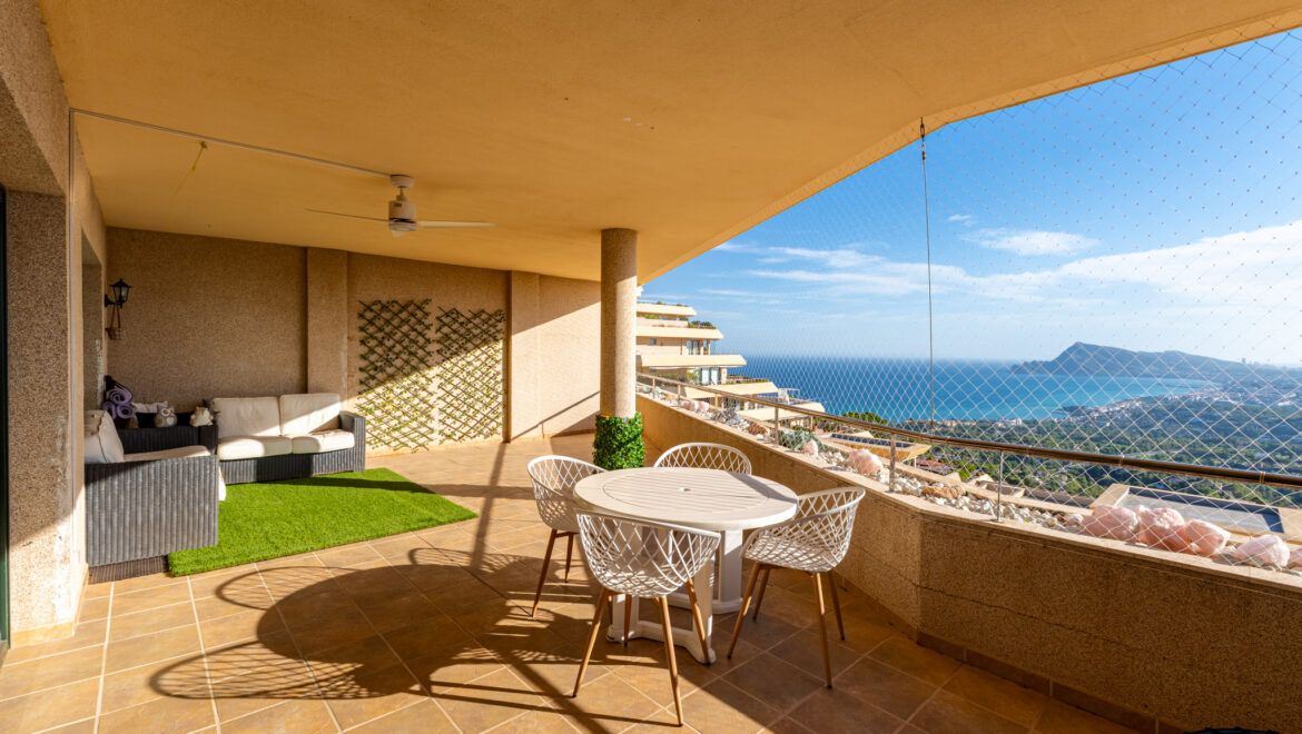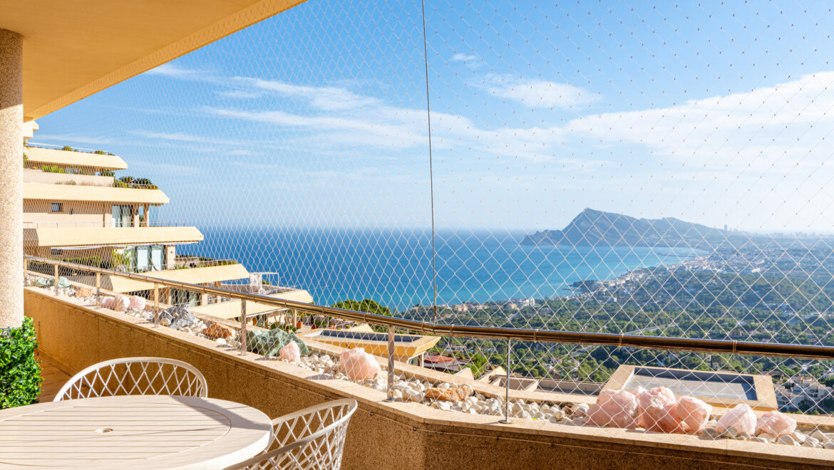 Discover this elegant 2-bedroom, 2-bathroom penthouse in the prestigious Sierra de Altea, offering breathtaking panoramic views of the Mediterranean Sea and surrounding mountains. With 134 m² of bright, airy living space, this home combines comfort, style, and functionality for an exceptional coastal lifestyle.