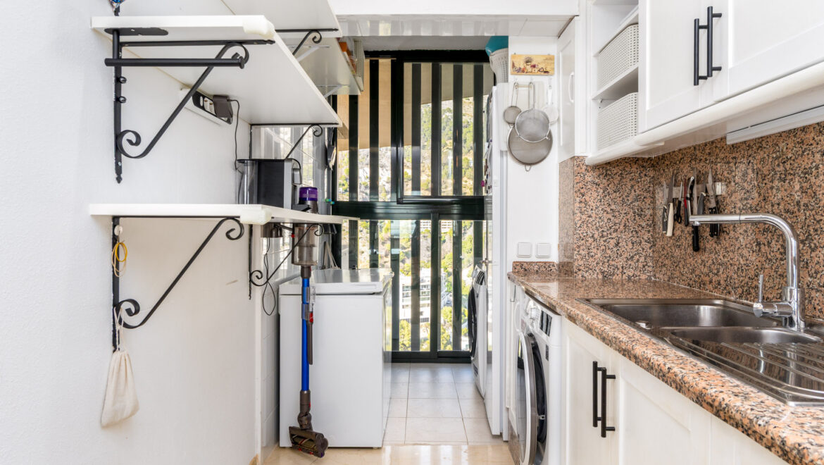 El salón de planta abierta, el comedor y la moderna cocina fluyen sin esfuerzo hacia una amplia terraza cubierta, el lugar perfecto para relajarse y disfrutar del sol de Altea durante todo el año. La suite principal cuenta con baño privado, mientras que el segundo dormitorio ofrece flexibilidad para invitados o familiares. Las comodidades adicionales incluyen una sala de lavandería, espacio de almacenamiento, garaje privado y acceso al ascensor.
