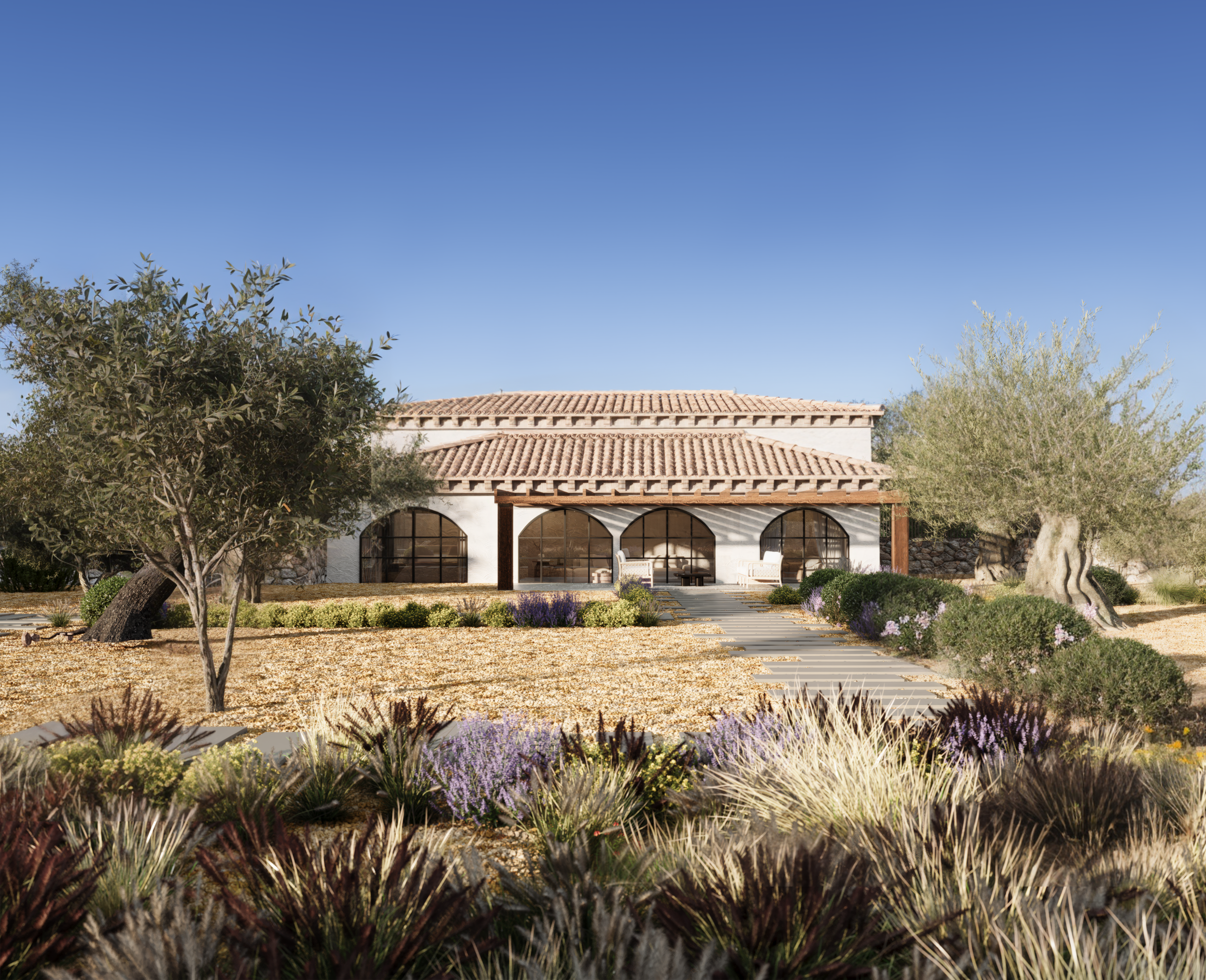 El proyecto incluye la rehabilitación de la casa principal, una casa de invitados de nueva construcción, un garaje independiente con capacidad para tres vehículos y una zona adicional destinada a gimnasio u oficina. Todo ello se integrará en un entorno de inspiración mediterránea, con detalles que aportan autenticidad y carácter, como caminos de arena blanca, olivos, piedra del Montgó, portones de madera maciza, pérgolas y materiales nobles cuidadosamente seleccionados.