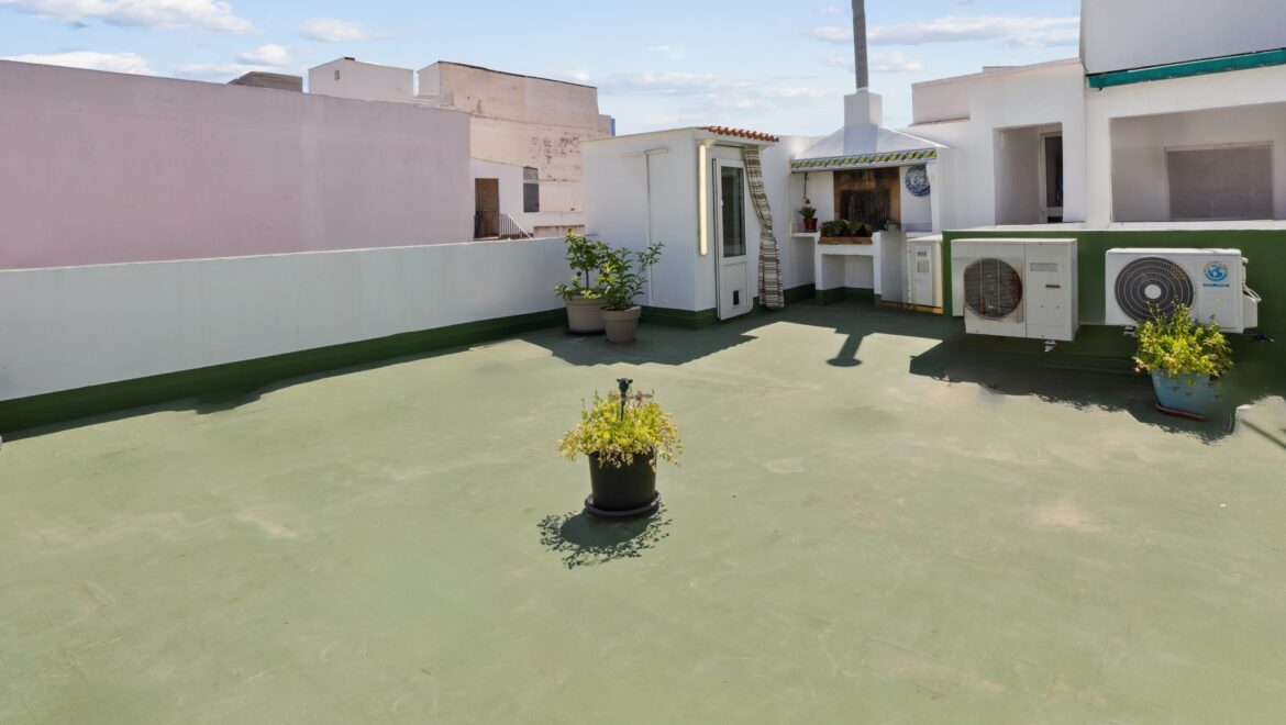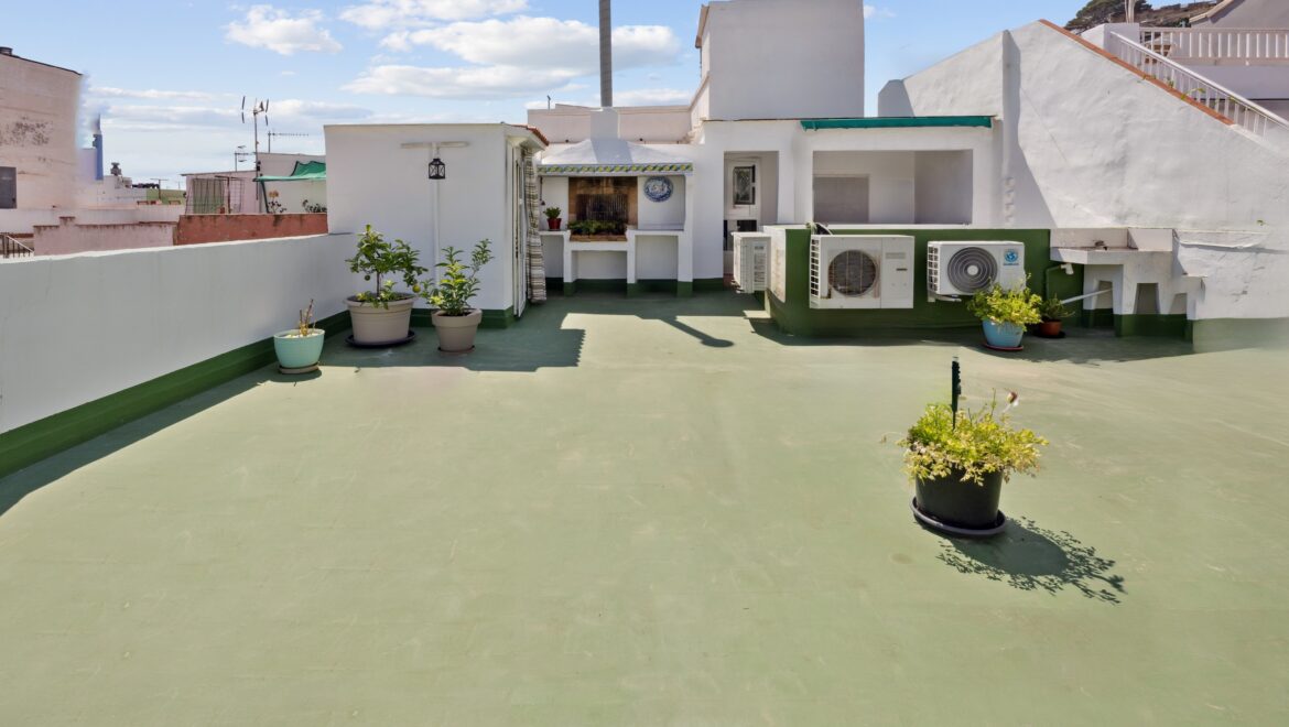 Continúe hasta el piso superior y encontrará una gran terraza privada en la azotea (aprox. 90 m²), perfecta para relajarse o entretenerse. Cuenta con una barbacoa de ladrillo incorporada, área de almacenamiento, amplio espacio para vegetación e incluso vistas parciales al mar.