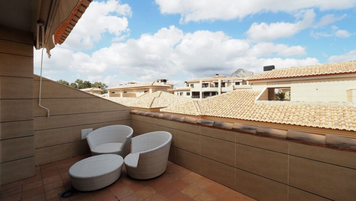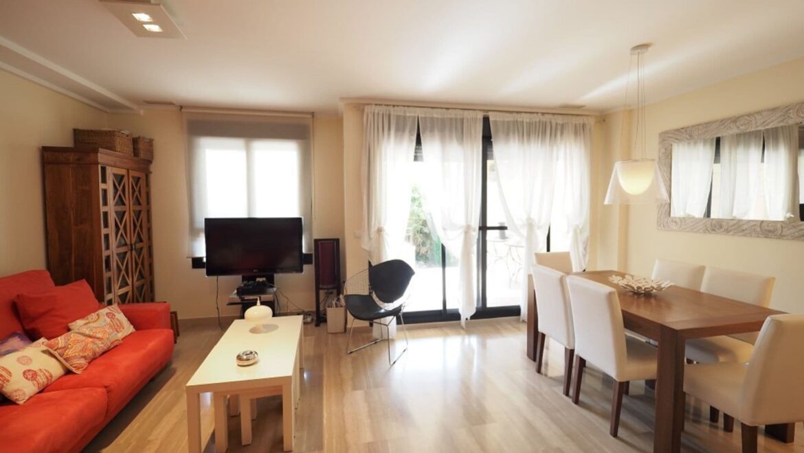 Con una superficie de 171 m² en tres niveles, la propiedad ofrece cinco amplios dormitorios y tres baños completos, lo que la hace ideal para familias o para aquellos que valoran los espacios generosos. La casa adosada disfruta de abundante luz natural y cuenta con una terraza privada de 47 m² y un soleado solárium, perfecto para relajarse o entretenerse al aire libre.