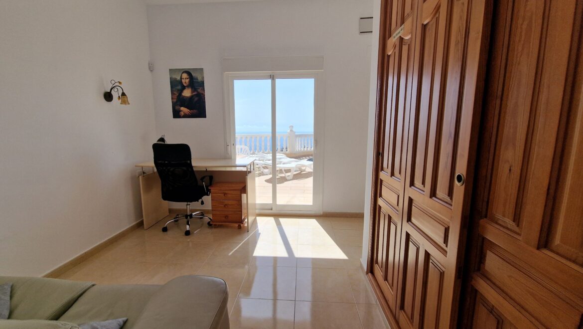La planta principal le da la bienvenida con un amplio recibidor que conduce a un aseo de cortesía, un acogedor dormitorio con baño privado y una sala de estar luminosa que se integra perfectamente con una cocina estilo americana. Este nivel también incluye un espacio versátil que puede utilizarse como trastero o despacho. Desde aquí se accede a una amplia terraza que ofrece impresionantes vistas al mar Mediterráneo.