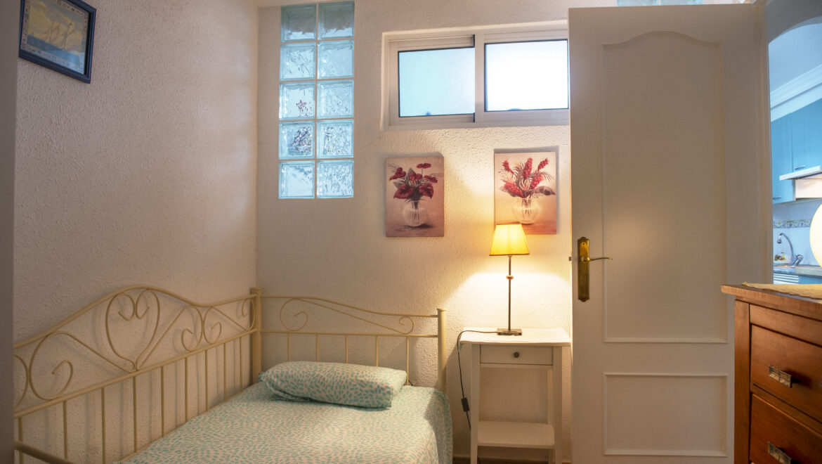 La planta baja alberga un apartamento independiente compuesto por dos dormitorios, salón-comedor, cocina equipada, baño completo y despensa. Se puede destinar a alquiler turístico o de larga estancia ya que esta a 10 minutos de playa caminando. Originalmente era un garaje que fue habilitado como vivienda.