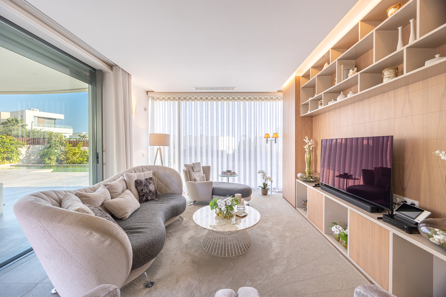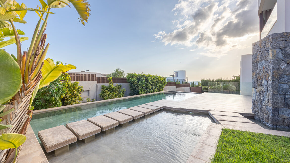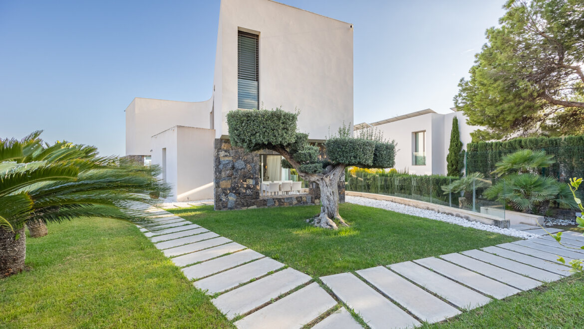 Construida en 2016, la villa ofrece 386 m² de refinado espacio habitable en una generosa parcela de 813 m². El diseño de planta abierta presenta interiores llenos de luz, acabados modernos y un flujo interior y exterior sin fisuras. Las amplias áreas de estar y comedor se abren a terrazas bañadas por el sol con vistas a la piscina privada y los jardines, ideales para el entretenimiento o la relajación tranquila.
