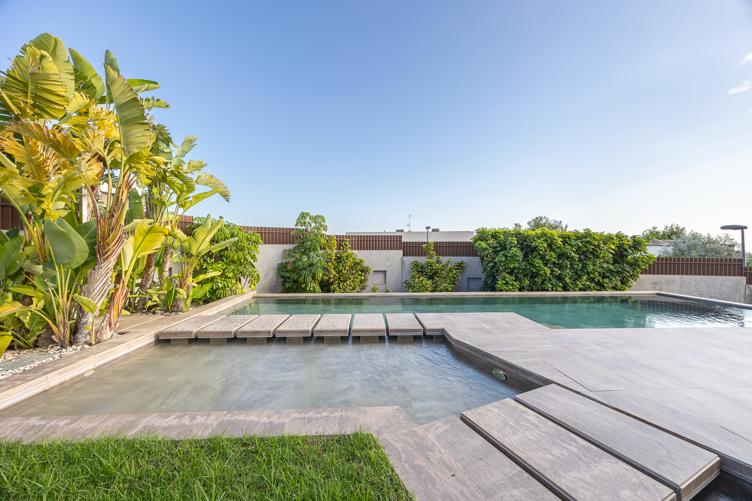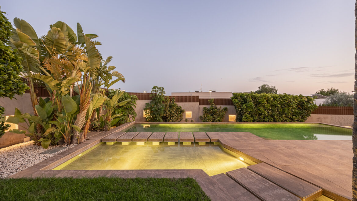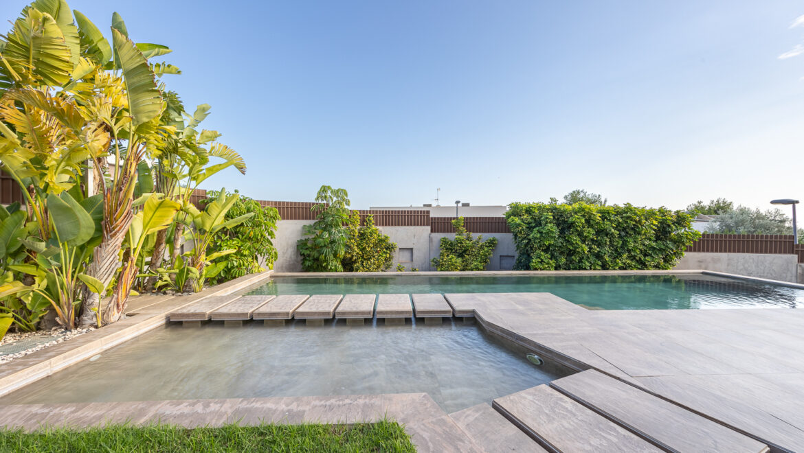 Piscina privada y jardín paisajístico