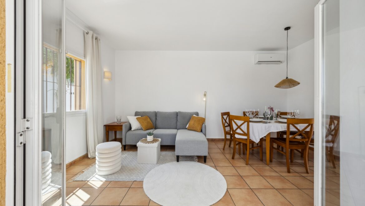 En el interior encontrarás un luminoso espacio de estar abierto con acceso directo al jardín, una cocina moderna con lavadero independiente y tres amplios dormitorios con armarios empotrados.