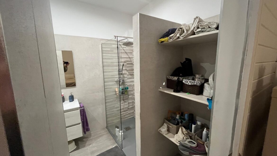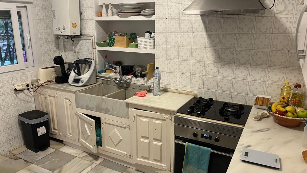 La casa principal se encuentra en el nivel superior y cuenta con un acogedor hall de entrada que conduce a una luminosa sala de estar y una encantadora naya cerrada perfecta para disfrutar durante todo el año. Hay tres amplios dormitorios, dos baños, una cocina totalmente equipada y acceso a dos terrazas en la azotea, ideales para tomar el sol o disfrutar de vistas abiertas. La casa también se beneficia de paneles solares, lo que mejora la eficiencia energética.