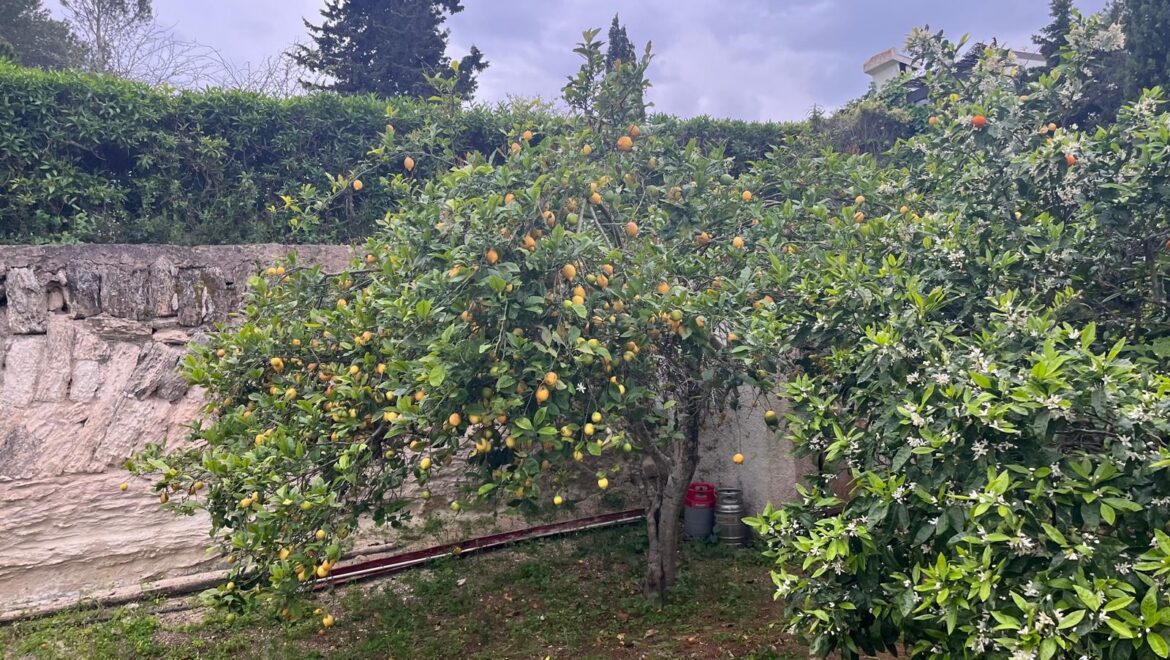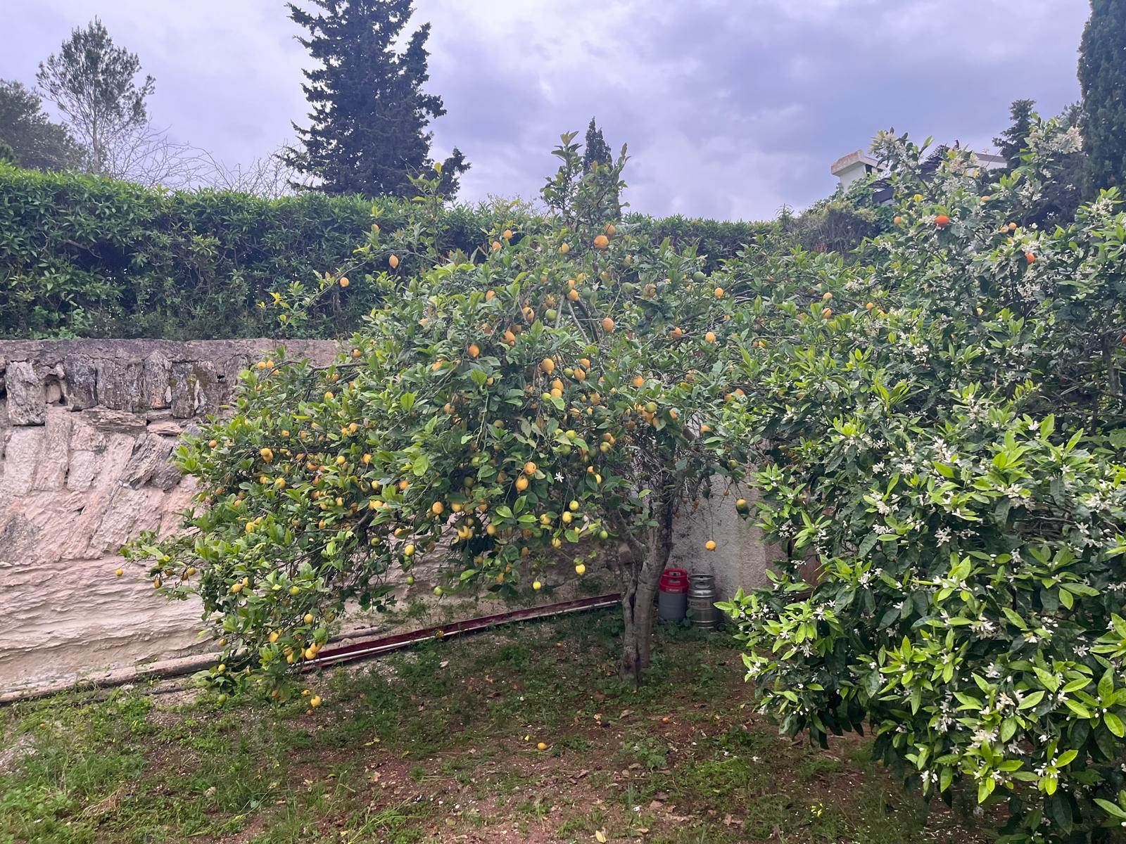 Ubicada en una generosa parcela con doble acceso por carretera, la propiedad cuenta con un hermoso jardín de dos niveles lleno de árboles frutales maduros, terrazas acogedoras y una piscina privada, ideal para tomar el sol del Mediterráneo.