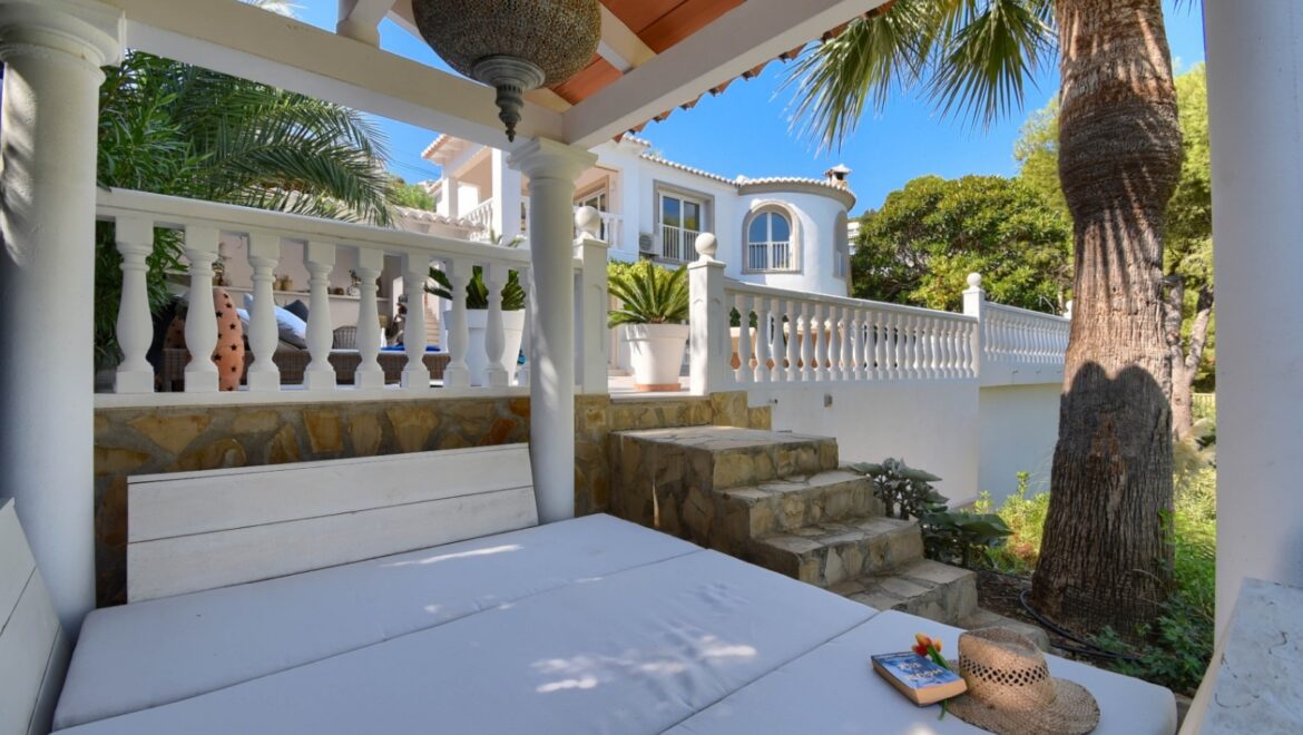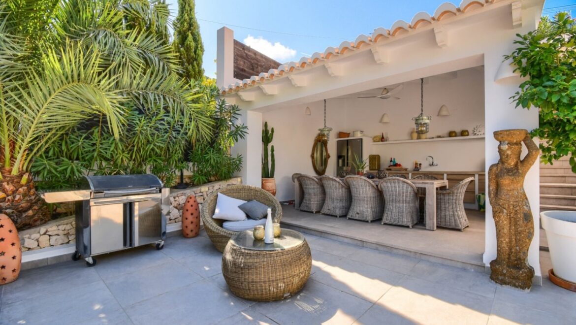 Descubre esta preciosa villa en Jávea, situada a tan solo 500 metros de la preciosa playa de La Barraca y cerca de la icónica Calle Portixol, una encantadora calle conocida por su ambiente acogedor, restaurantes mediterráneos y preciosos paseos marítimos a lo largo de la costa. La villa combina tranquilidad, lujo y la comodidad de una ubicación céntrica, lo que la convierte en el lugar perfecto para vivir o pasar unas vacaciones con familiares y amigos.