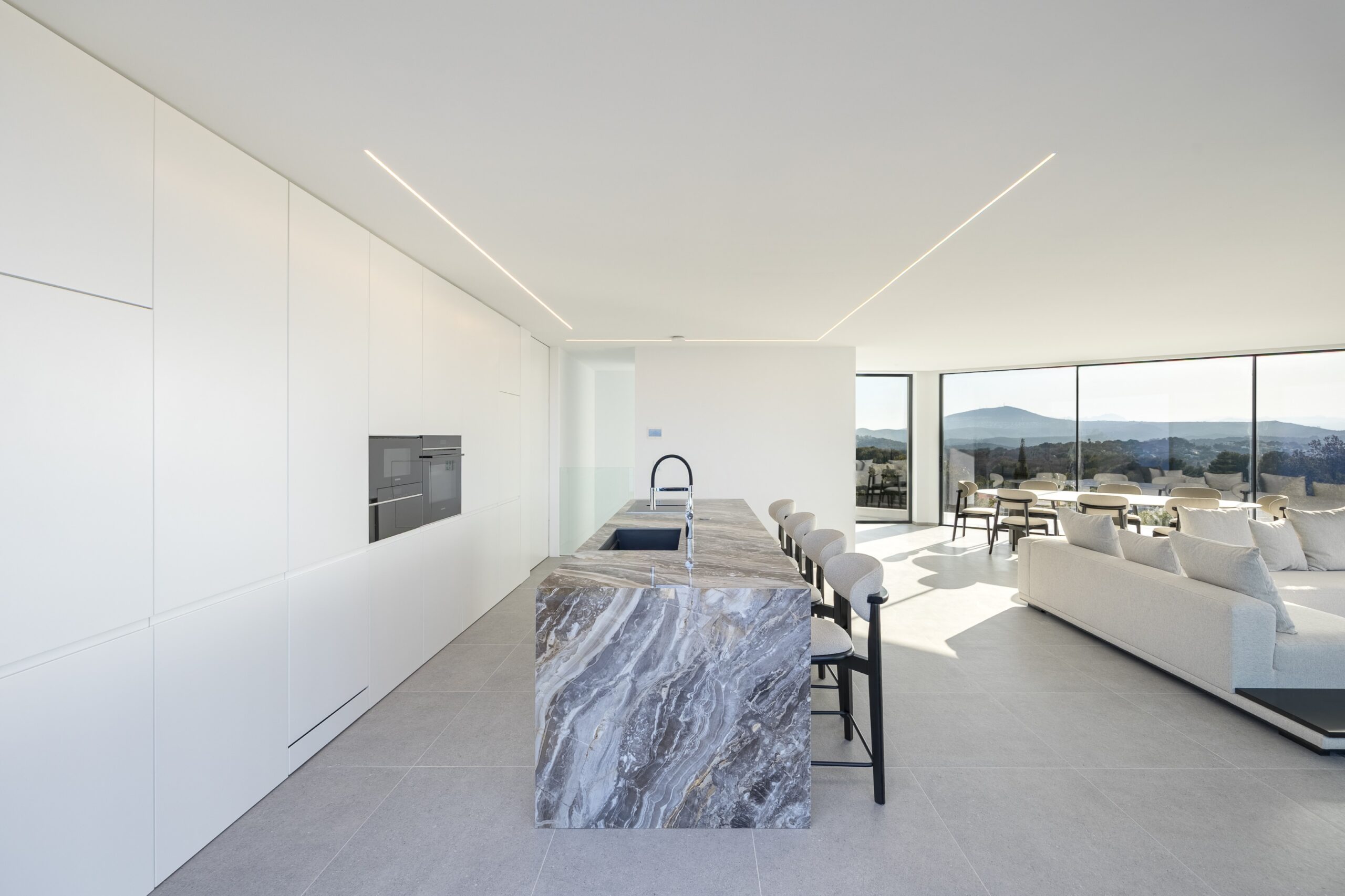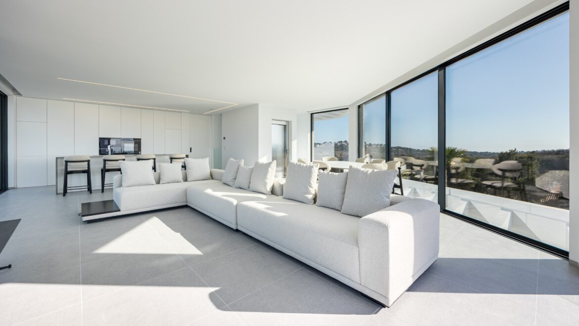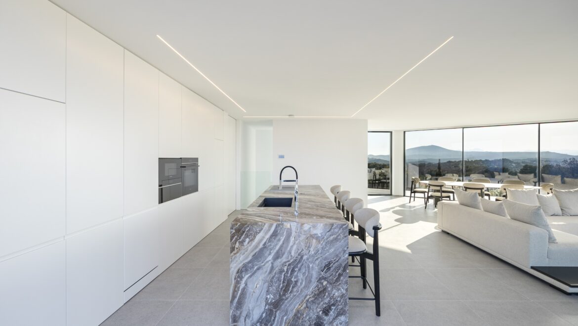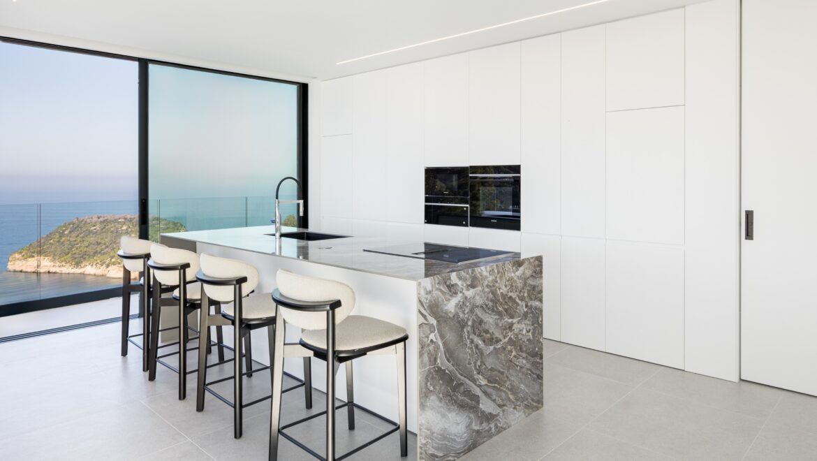 En el interior, cada detalle ha sido cuidadosamente diseñado para crear una sensación de sofisticación. La cocina está equipada con electrodomésticos de última generación, y los cuartos de baño están acabados con materiales de lujo. La villa también ofrece espacio para un spa y cuenta con ascensor, aire acondicionado y un sistema de alarma para mayor tranquilidad.