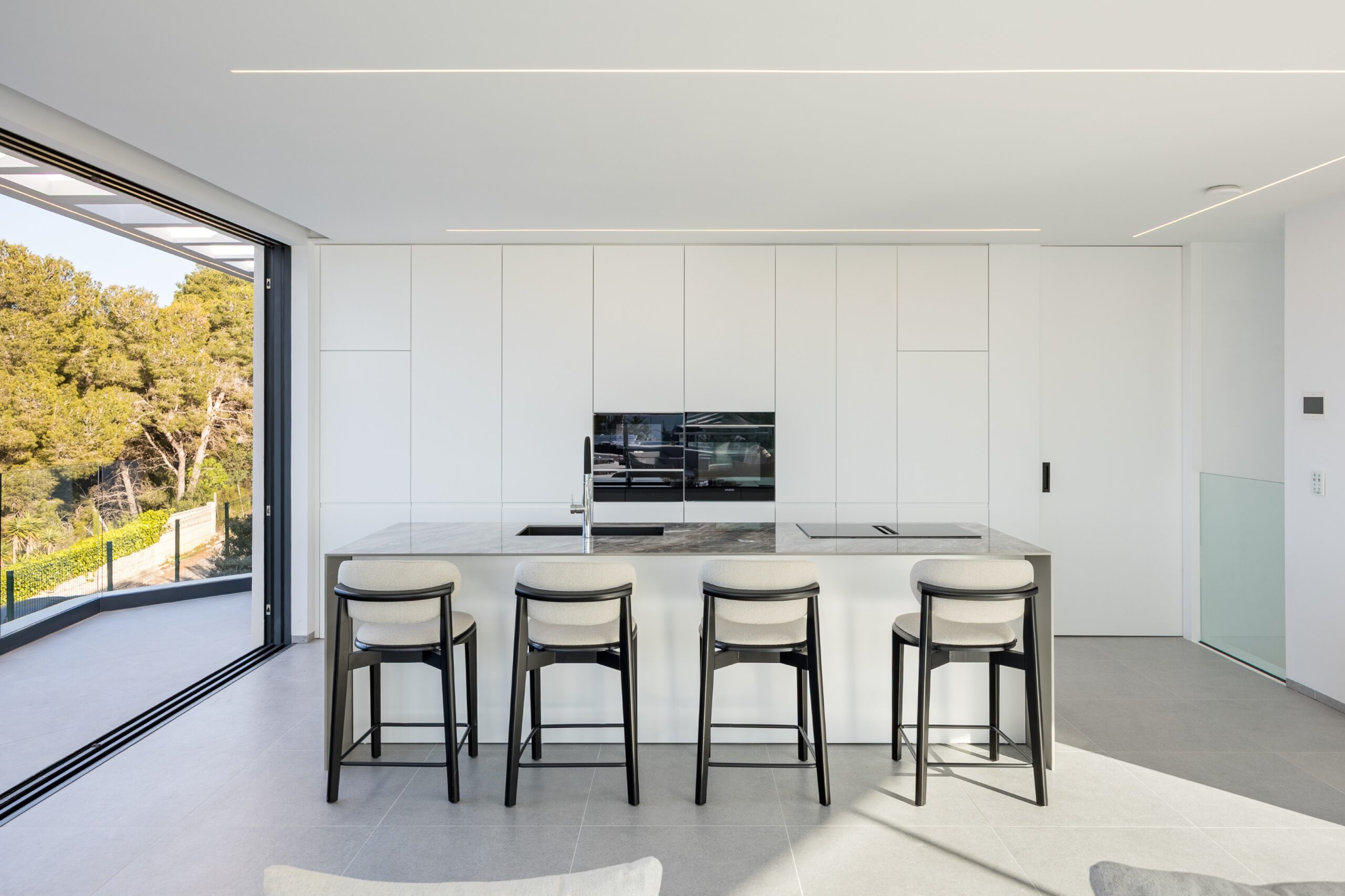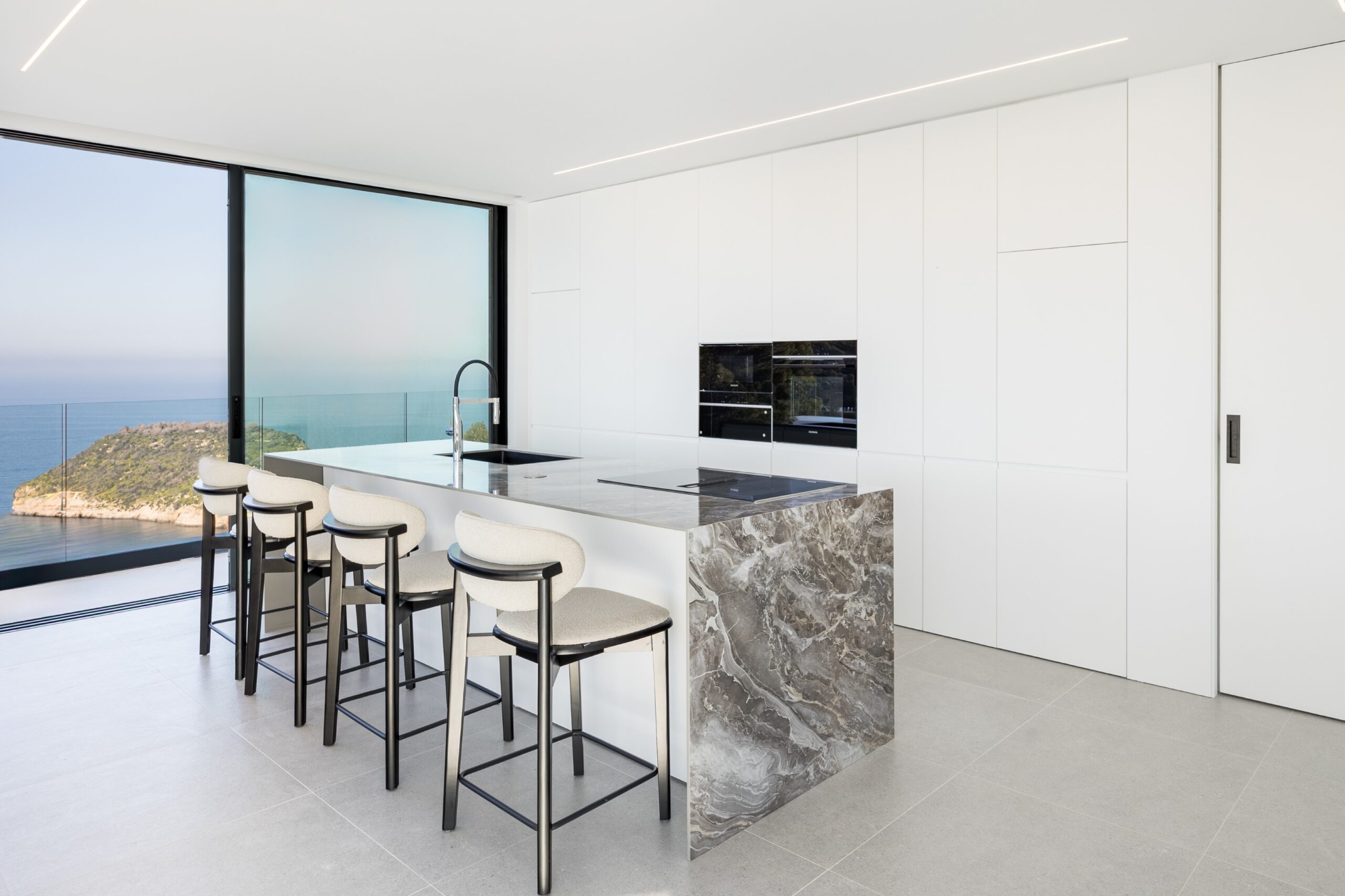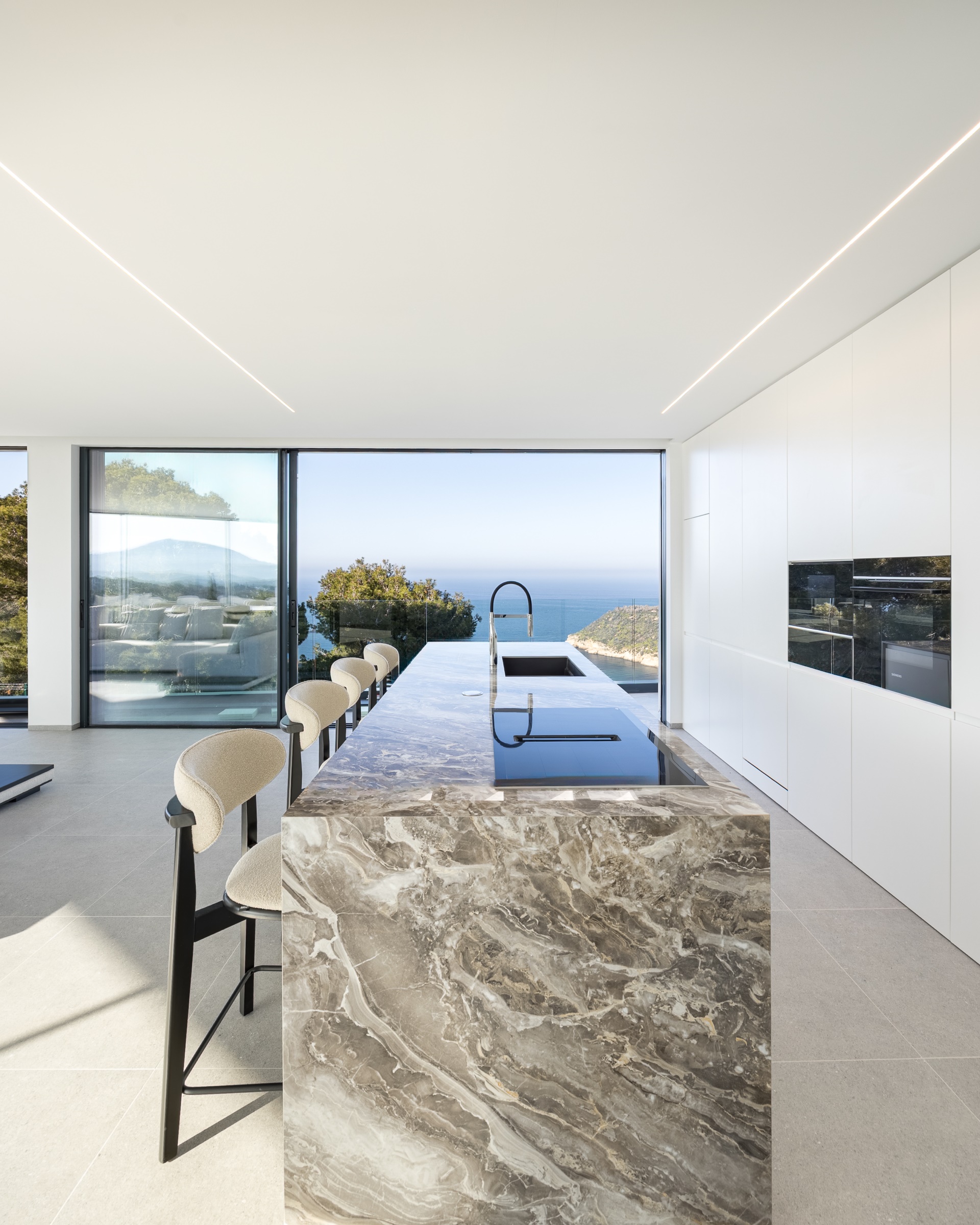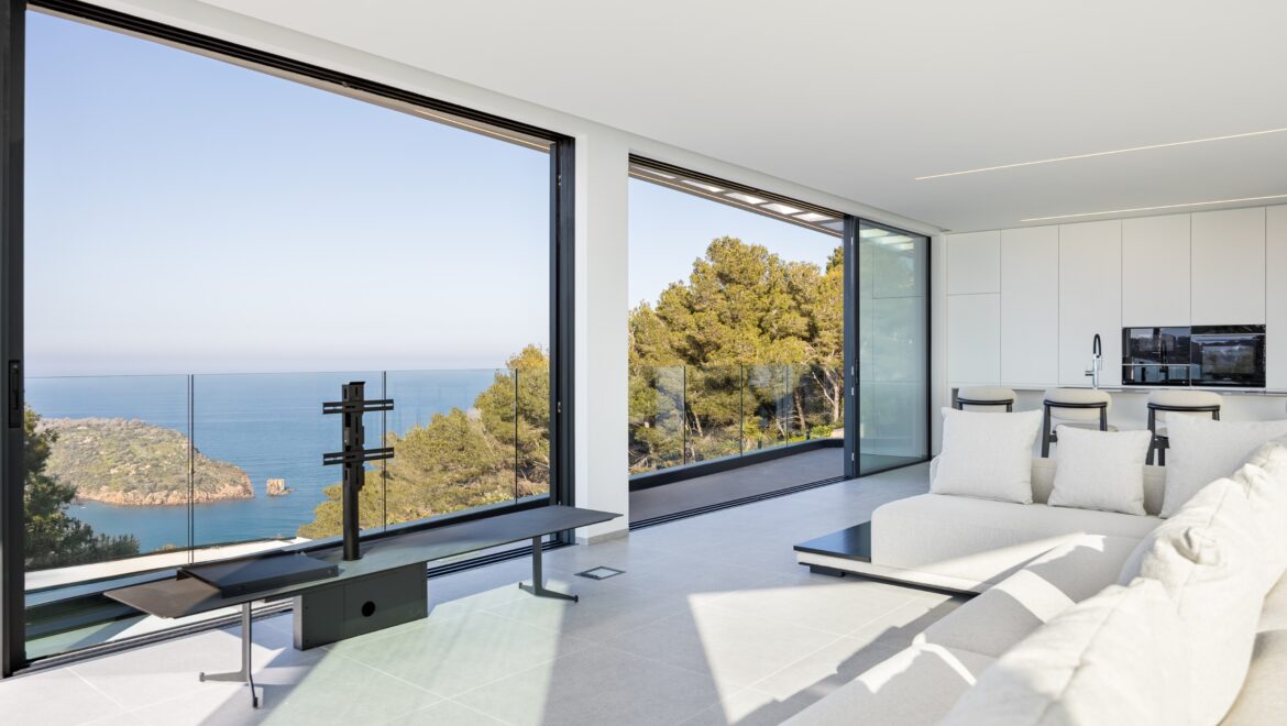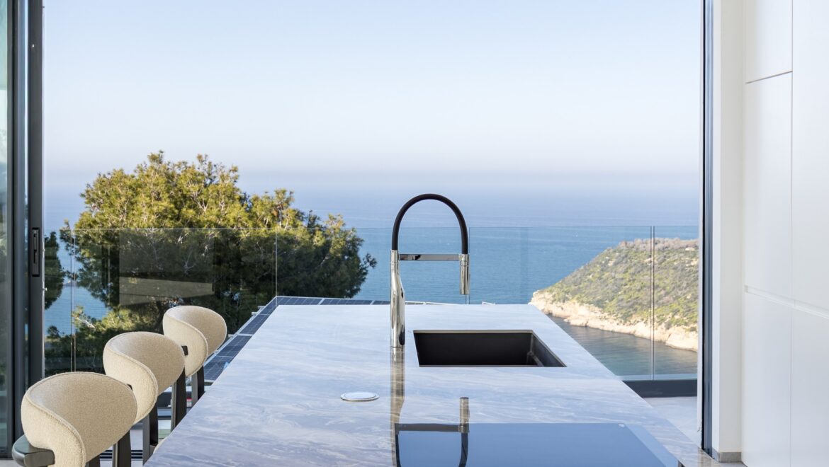 Inside, every detail has been carefully designed to create a sense of sophistication. The kitchen is equipped with state-of-the-art appliances, and the bathrooms are finished with luxurious materials. The villa also offers space for a spa and features a lift, air conditioning and an alarm system for peace of mind.