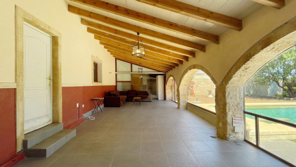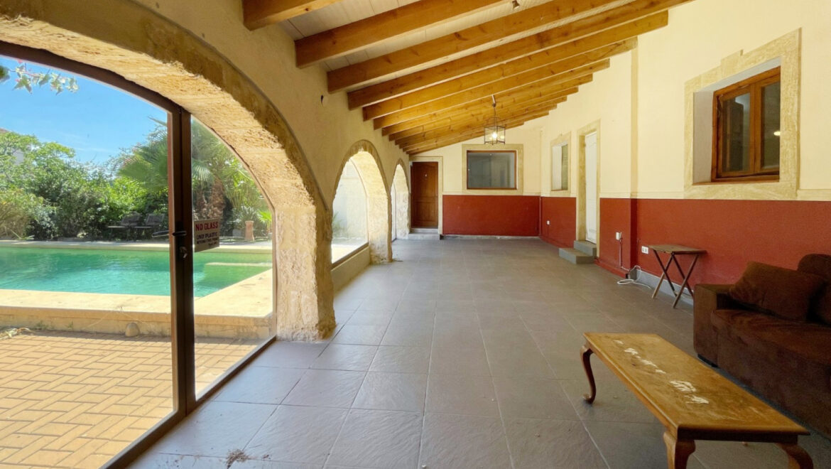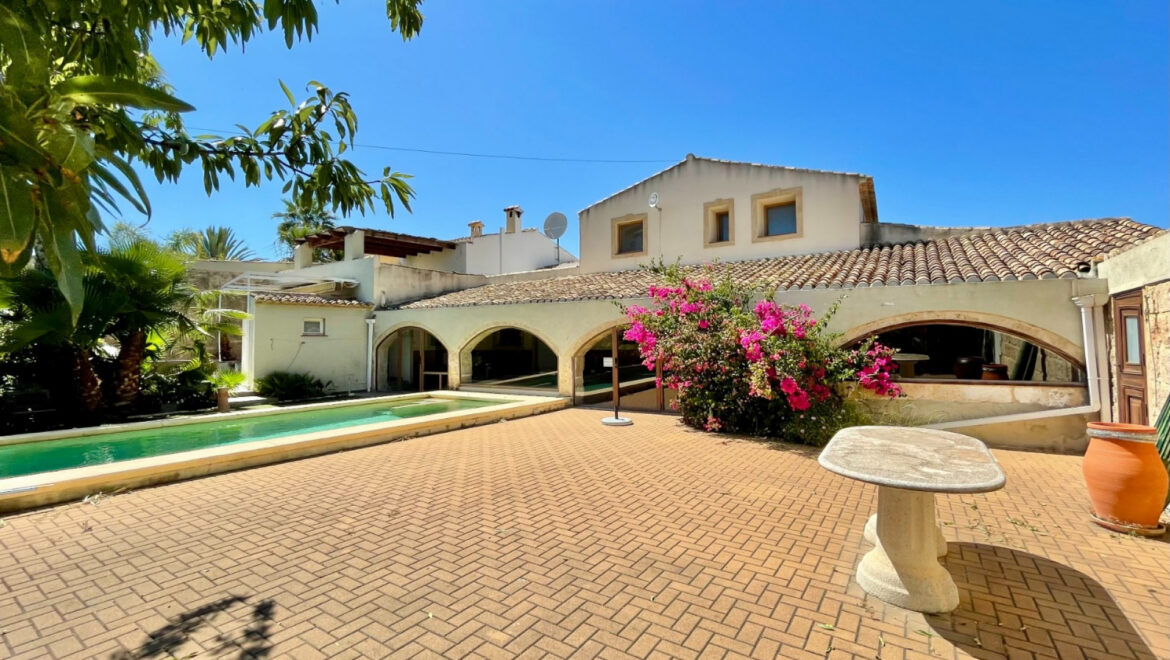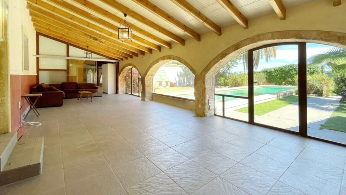 Distribuida en dos plantas y con 441 m² de superficie construida, la casa cuenta con cinco dormitorios bien proporcionados y cuatro baños, lo que la hace perfecta para la vida familiar o para entretener a los invitados. Los interiores son ricos en elementos originales, desde arcos de piedra de Tosca hasta rincones acogedores que invitan a la relajación durante todo el año. La cocina de tamaño familiar, varias salas de estar y naya acristalada brindan un flujo cómodo entre el interior y el exterior.