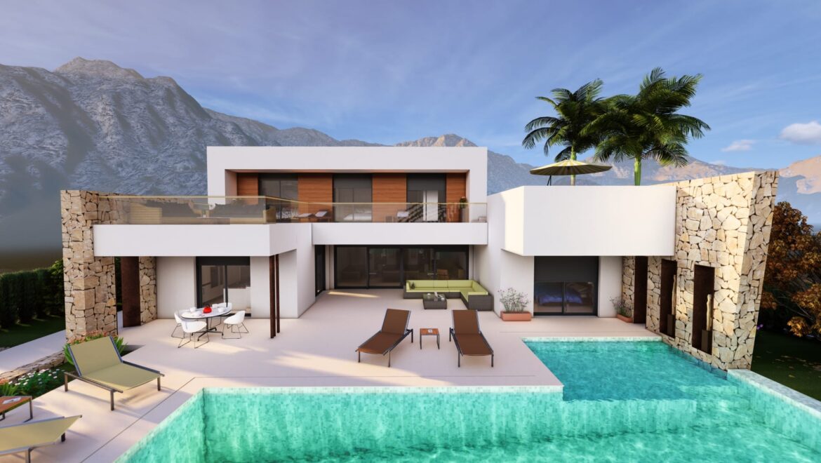 Esta impresionante villa de nueva construcción, actualmente en construcción y cuya finalización está prevista para 2025, se encuentra en una zona tranquila y codiciada de Moraira, Alicante. Diseñada teniendo en cuenta la comodidad, el estilo y la sostenibilidad, la casa se encuentra en una parcela plana de 983 m² y ofrece una amplia superficie habitable construida de 350 m² en dos plantas.