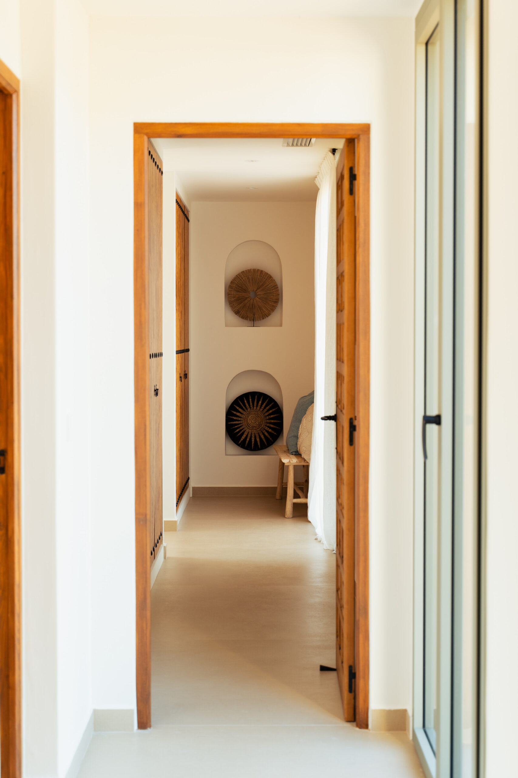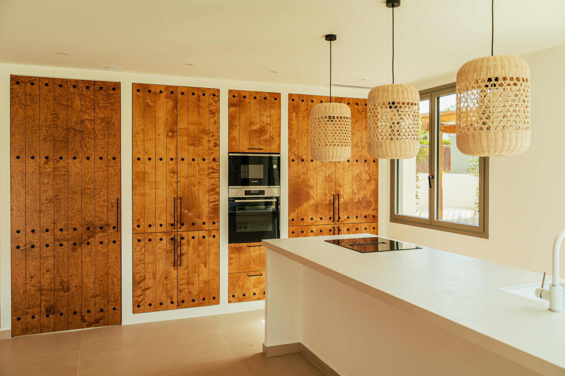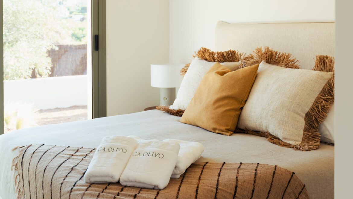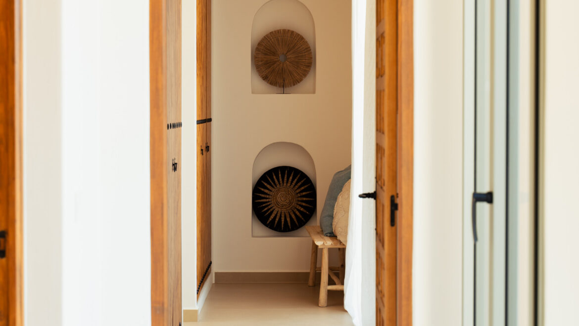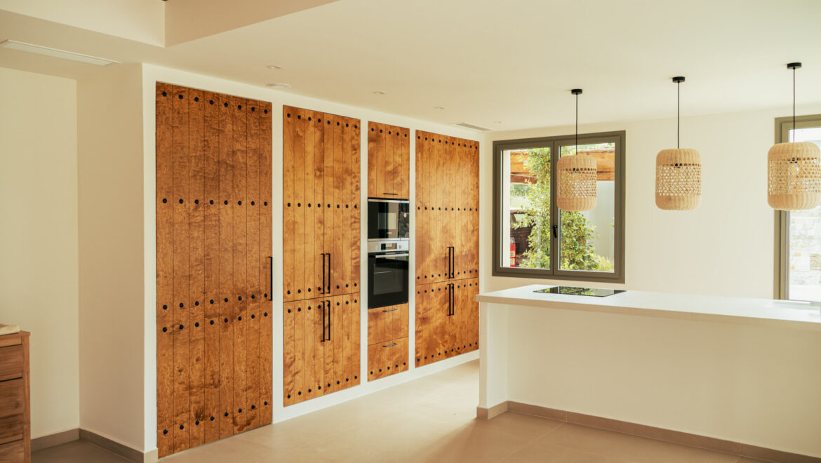 CA Los Olivos es una exclusiva villa mediterránea–ibicenca en venta en Jávea, con orientación suroeste que garantiza una excelente entrada de luz natural durante todo el día. Su arquitectura destaca por esquinas redondeadas, techos abovedados y vigas de madera vistas, inspiradas en las curvas del paisaje mediterráneo. El tejado de tejas de arcilla y las grandes ventanas con contraventanas refuerzan su carácter auténtico y crean un ambiente luminoso, cálido y tranquilo. La vivienda se distribuye íntegramente en una sola planta y cuenta con un amplio salón-comedor, cocina totalmente equipada, lavadero, tres dormitorios con armarios empotrados, tres baños en suite y un aseo de invitados.