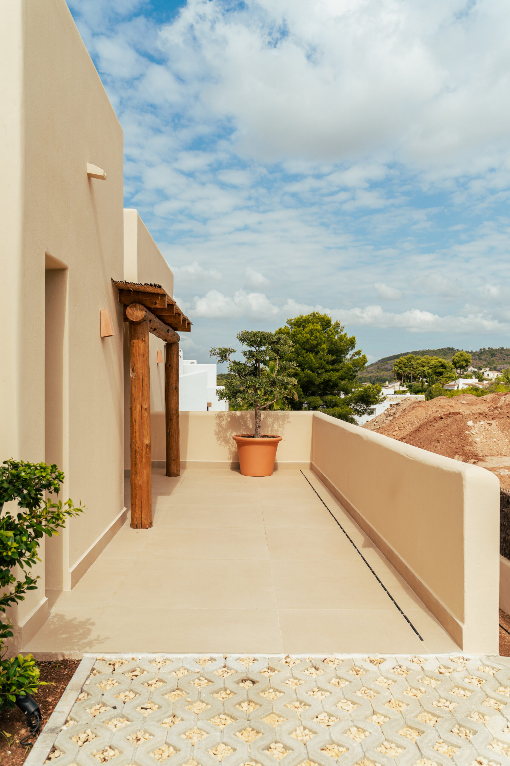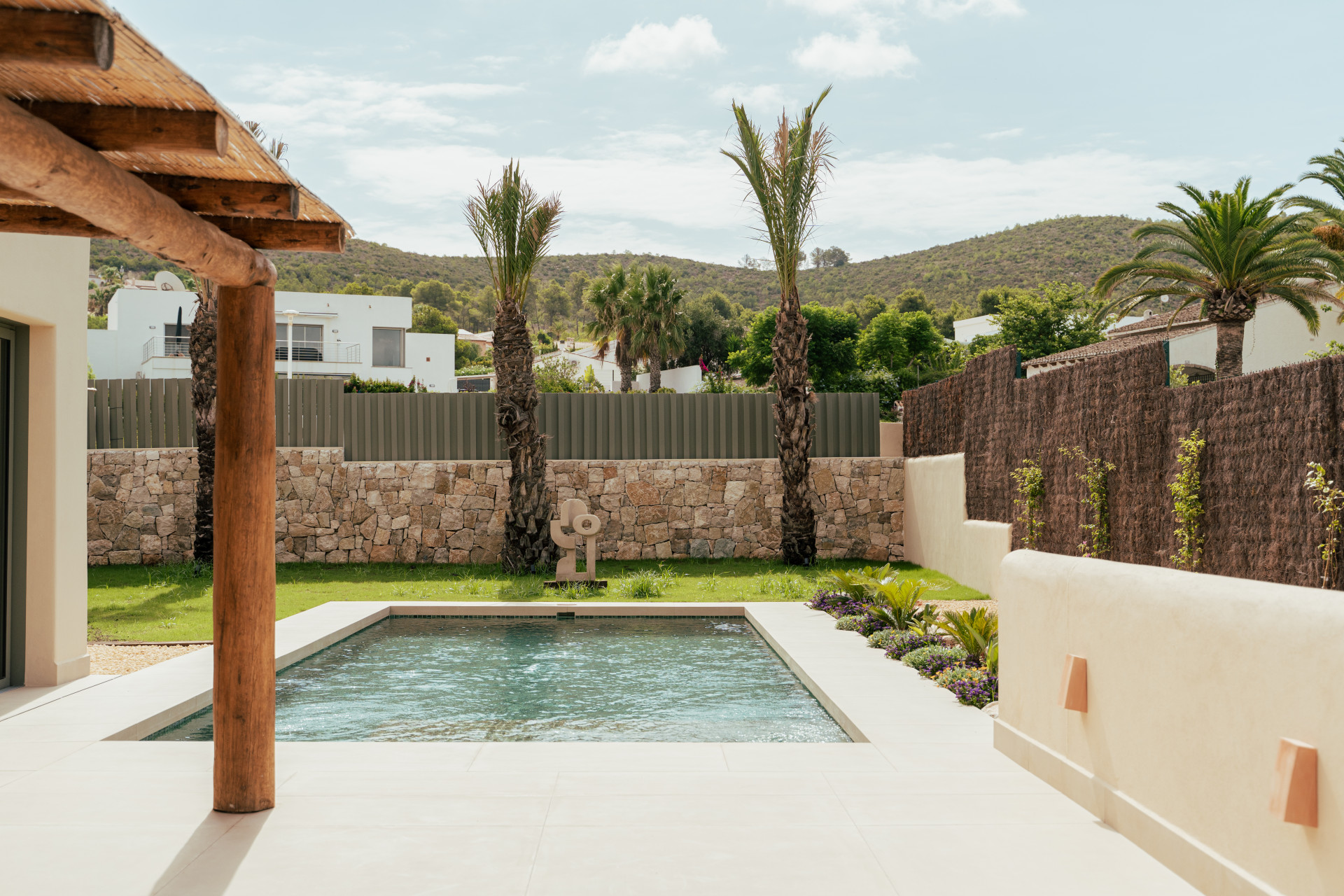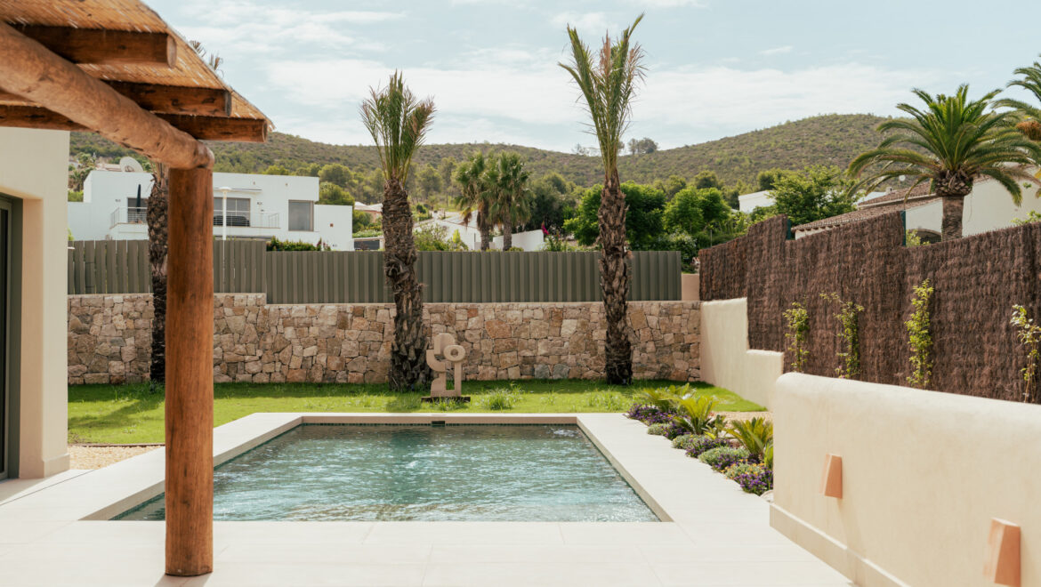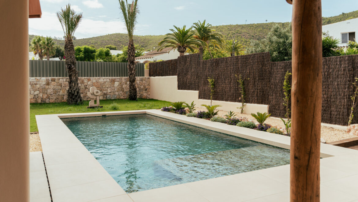El exterior ha sido diseñado como un espacio de relax y disfrute, con un cuidado jardín mediterráneo, piscina de agua turquesa y amplias terrazas soleadas ideales para comidas al aire libre bajo el clima privilegiado de la Costa Blanca. La villa dispone de pérgola para dos coches, paneles solares, aire acondicionado por zonas, sistema domótico para la iluminación, videoportero y alarma. Los acabados de alta calidad, como la piedra natural tallada a mano y las vigas de madera, aportan elegancia y autenticidad, convirtiendo CA Los Olivos en una opción ideal tanto como residencia habitual, segunda vivienda o inversión inmobiliaria en Jávea.