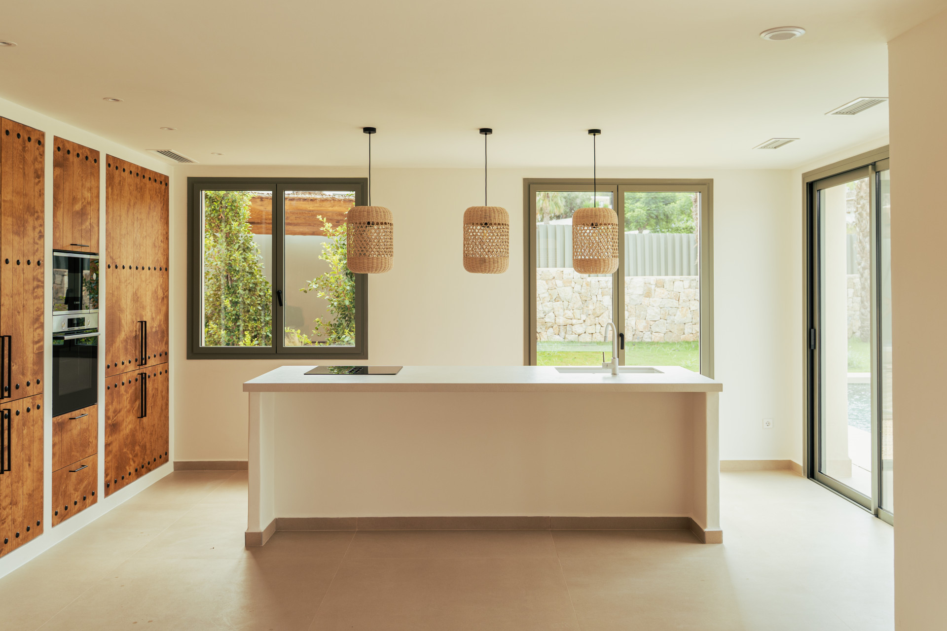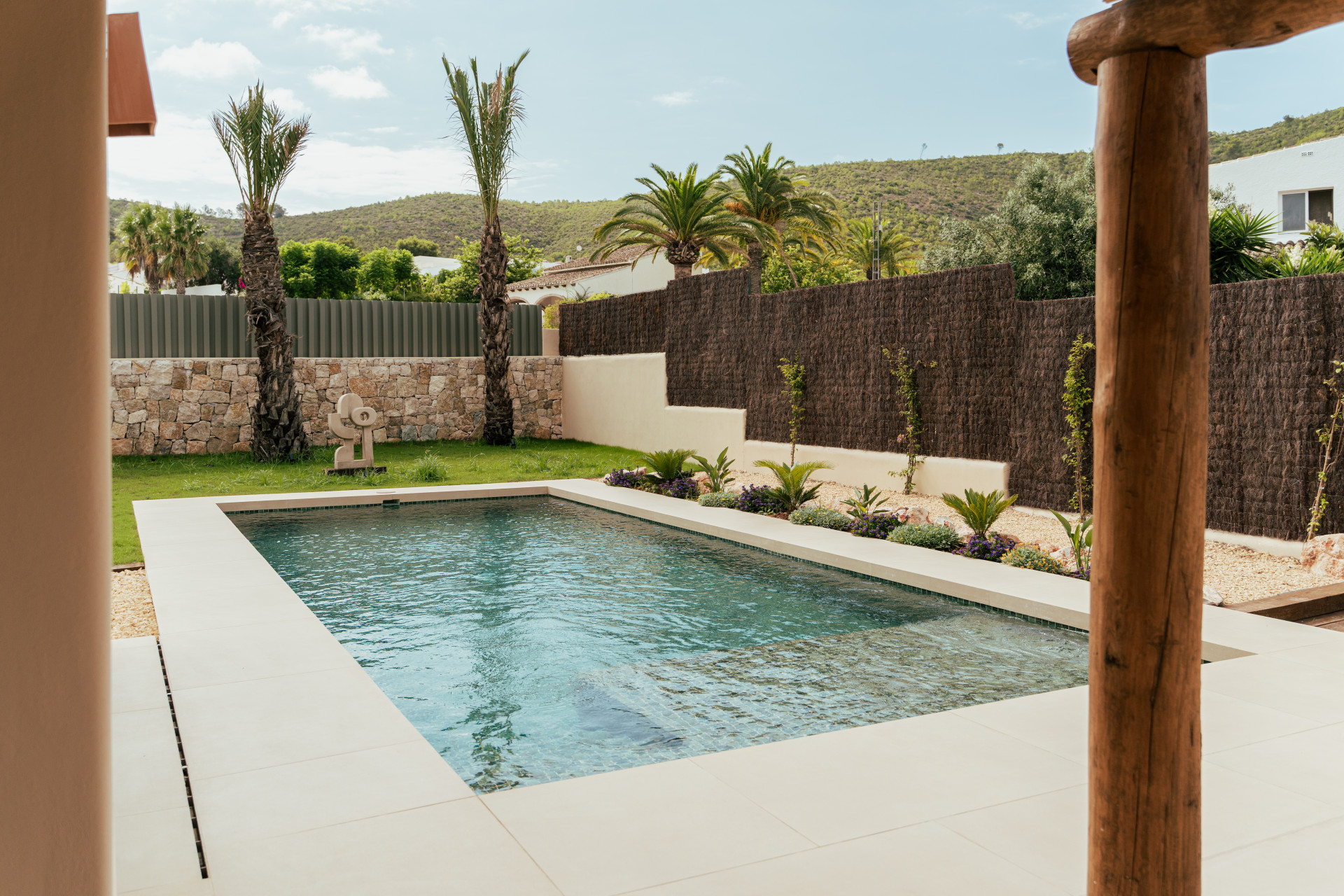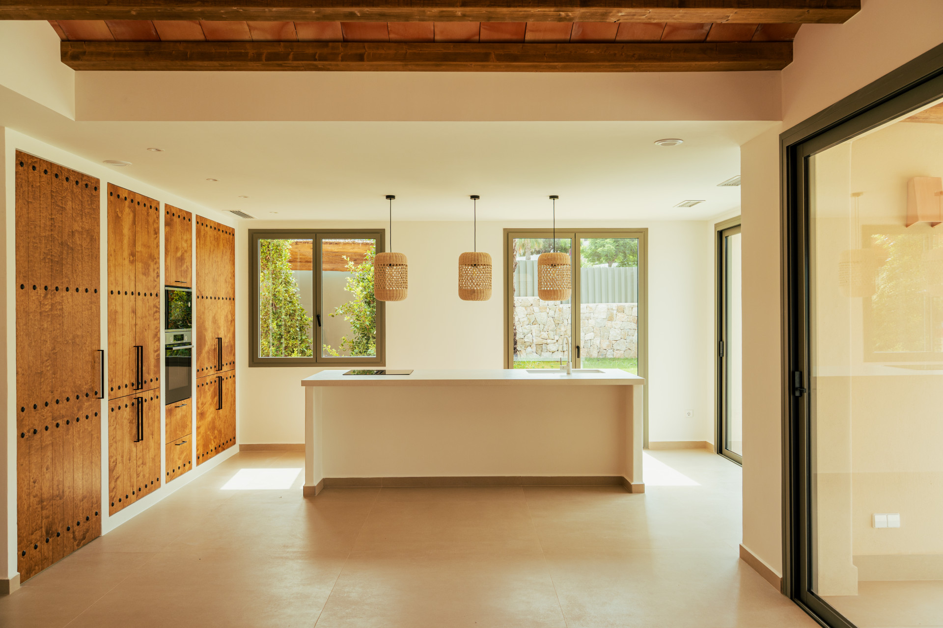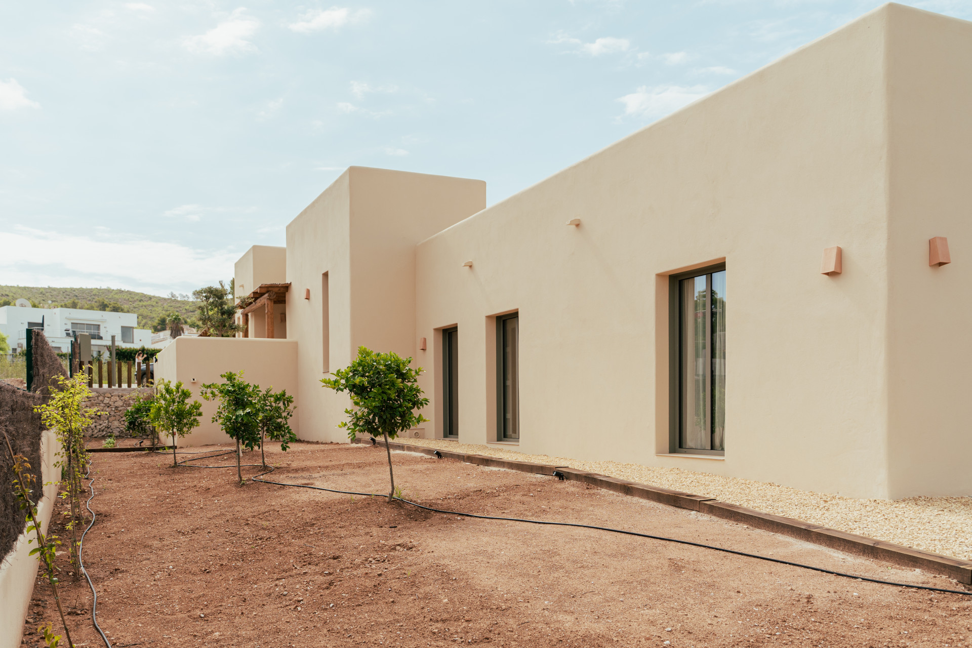 El exterior ha sido diseñado como un espacio de relax y disfrute, con un cuidado jardín mediterráneo, piscina de agua turquesa y amplias terrazas soleadas ideales para comidas al aire libre bajo el clima privilegiado de la Costa Blanca. La villa dispone de pérgola para dos coches, paneles solares, aire acondicionado por zonas, sistema domótico para la iluminación, videoportero y alarma. Los acabados de alta calidad, como la piedra natural tallada a mano y las vigas de madera, aportan elegancia y autenticidad, convirtiendo CA Los Olivos en una opción ideal tanto como residencia habitual, segunda vivienda o inversión inmobiliaria en Jávea.